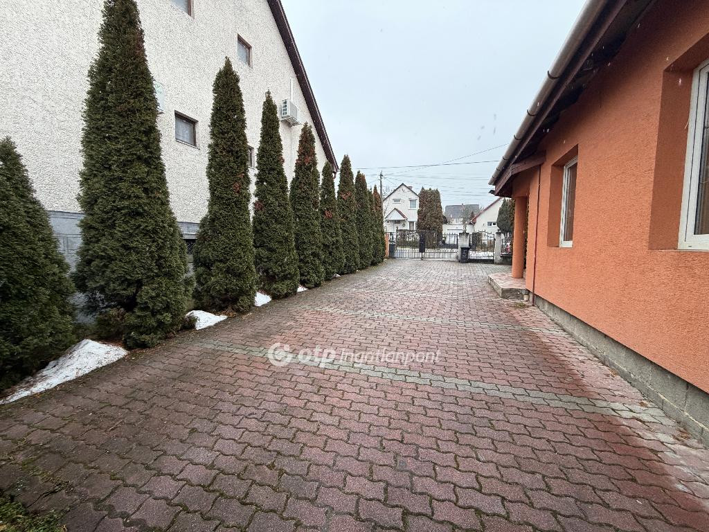 A térkővel burkolt udvarban, fedett gépkocsi beálló biztosít védett helyet, akár 2 autó számára is.