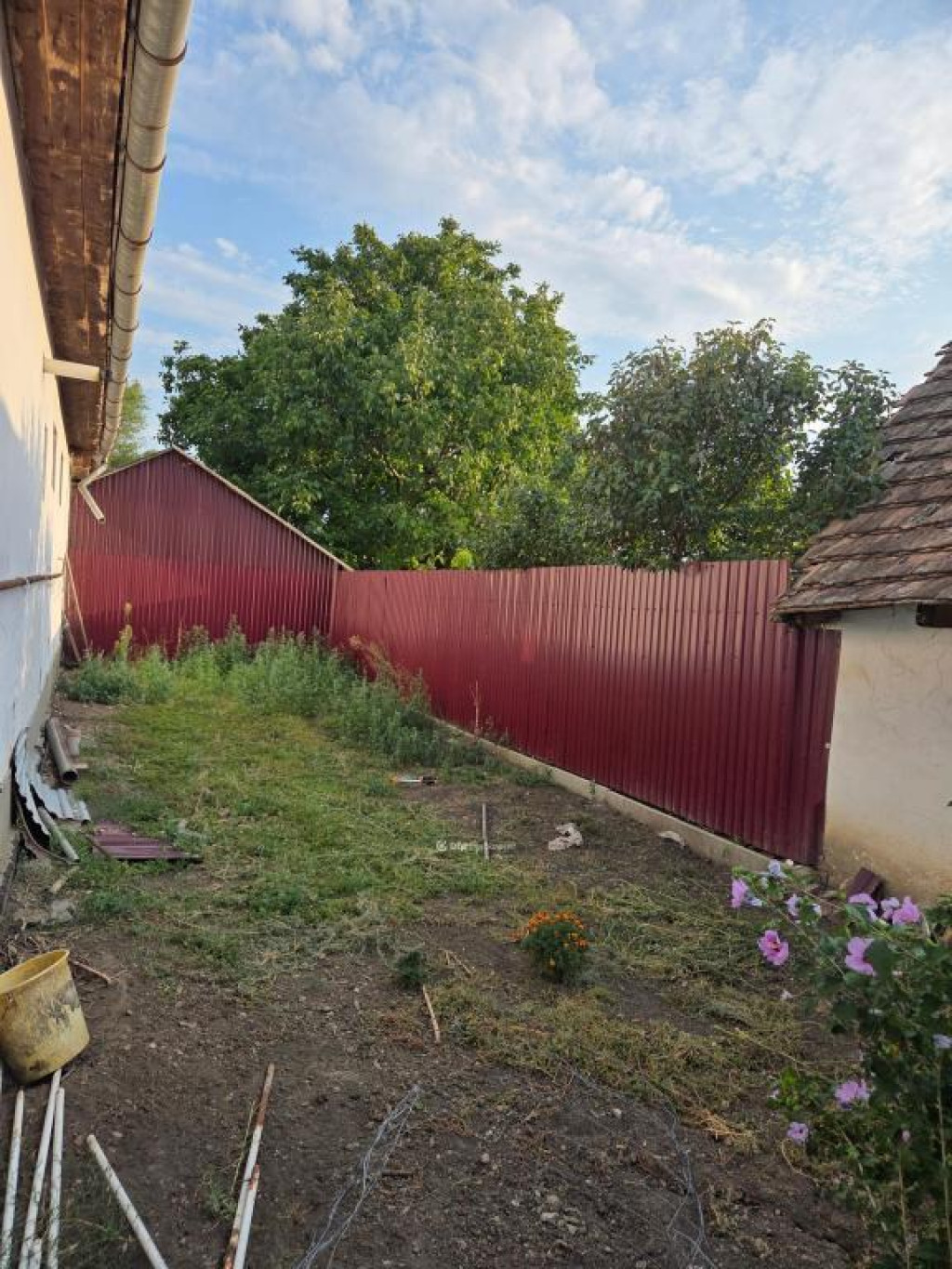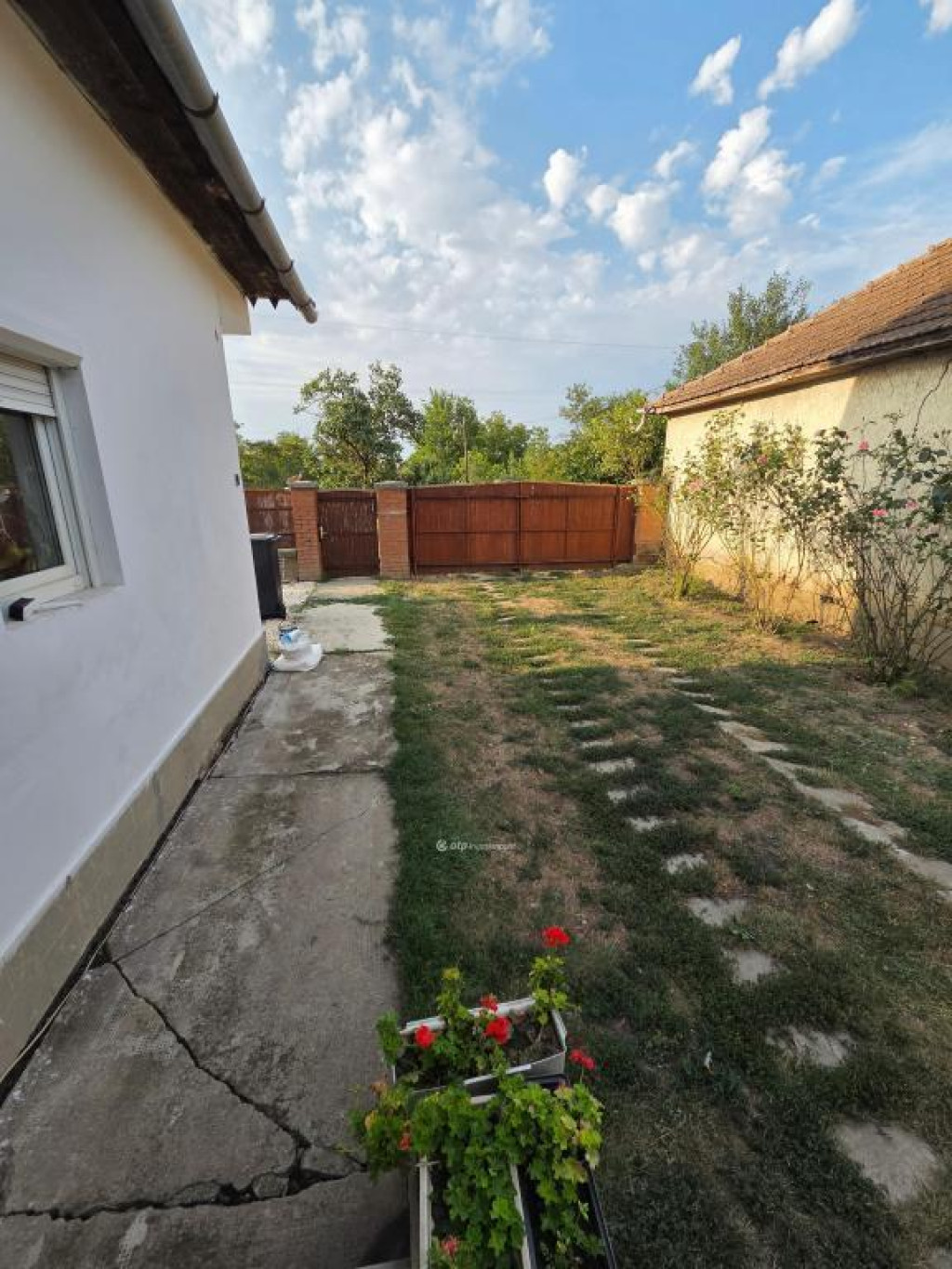 A telek 1175 m2, azon felülről fedett garázs, melléképület és állattartó ólak találhatók. A telek 3 külön kertből áll, mind elkerített. A leghátsó kertrészben szépen gondozott gyümölcsfák állnak. A ház előtt egy kis előkert, a ház mellett egy oldalsó kertrész is van.
