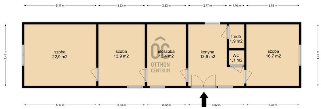 - 3 szoba, előszoba, konyha, fürdő, WC helyiségek lettek kialakítva,