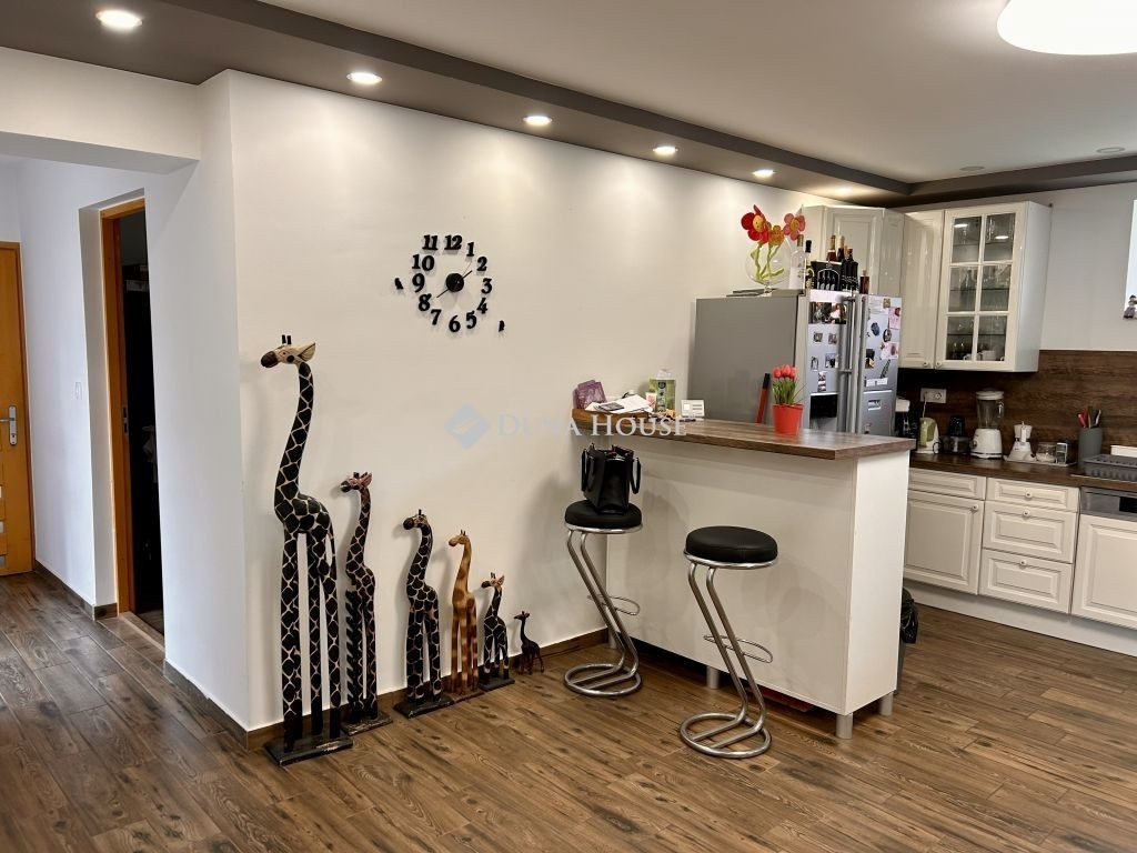 Az ingatlan földszintjén az előtérből(13,23m²) nyílik a különálló fürdőszoba(4,8m²) és wc (1,04m²) amely praktikus elrendezést biztosít. Innen tovább haladva a tágas amerikai konyhás nappaliba(52,55m²) érkezünk, amely modern kialakításával a mai igényeknek tökéletesen megfelel. A földszinten található a hálószoba(17,73m²) mellet még egy szoba(10,31m²), amely jelenleg gardróbként funkciónál. A háztartási helységben(7,43m²) zuhanyzó és külön WC is van, a praktikum jegyében. Innen érhető el a kazánház(21,49m²), mely vegyes tüzelésű kazánnal felszerelt. Az emeleti szintre az előtérből induló lépcső vezet fel, ahol kettő külön nyíló hálószoba kapott helyet(bruttó 17,05m²+13,11m²)-az egyikhez erkély(4m²) is tartozik. A tetőtér jelenleg részben beépített, így a lakóterület bővítése könnyedén megvalósítható.