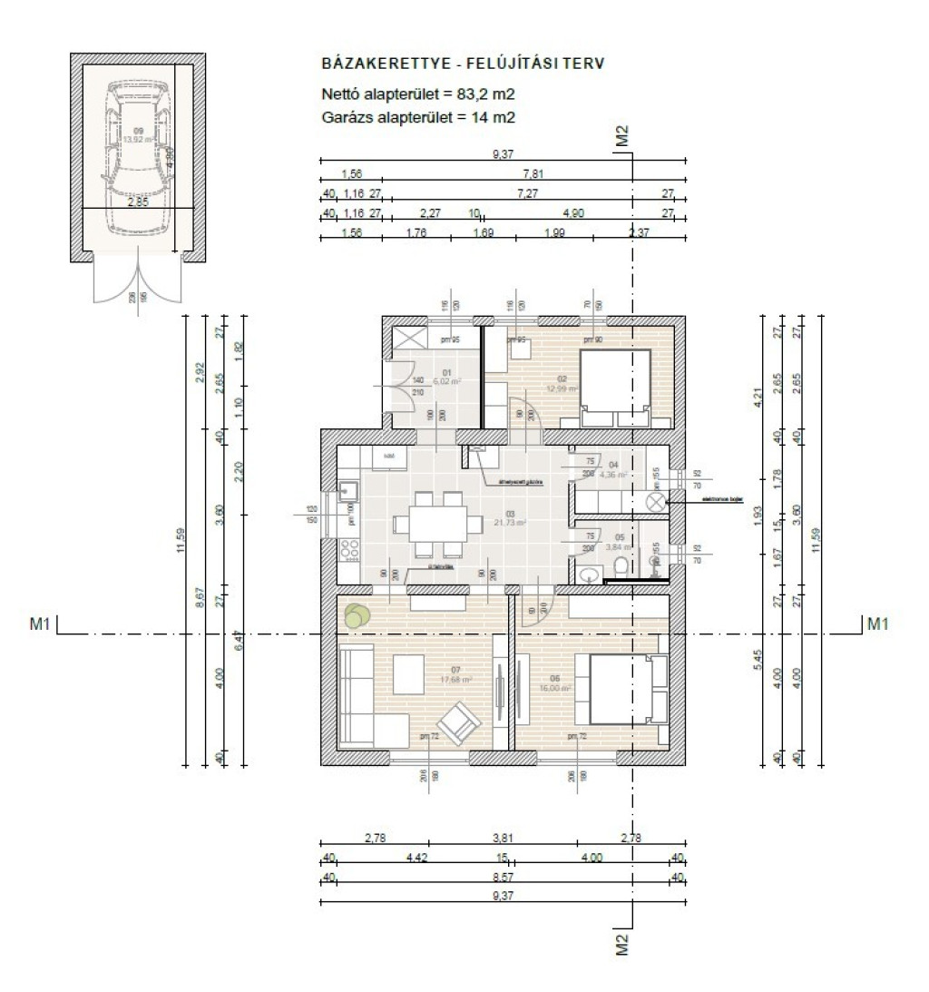 15 m²-es garázs és 10 m²-es pince