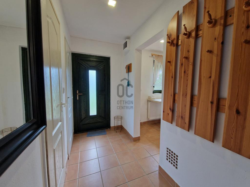 A modern fa nyílászárók hő- és hangszigeteltek, redőnnyel és szúnyoghálóval felszereltek. A padlóburkolatok járólap, laminált padló és parketta kombinációjából állnak.