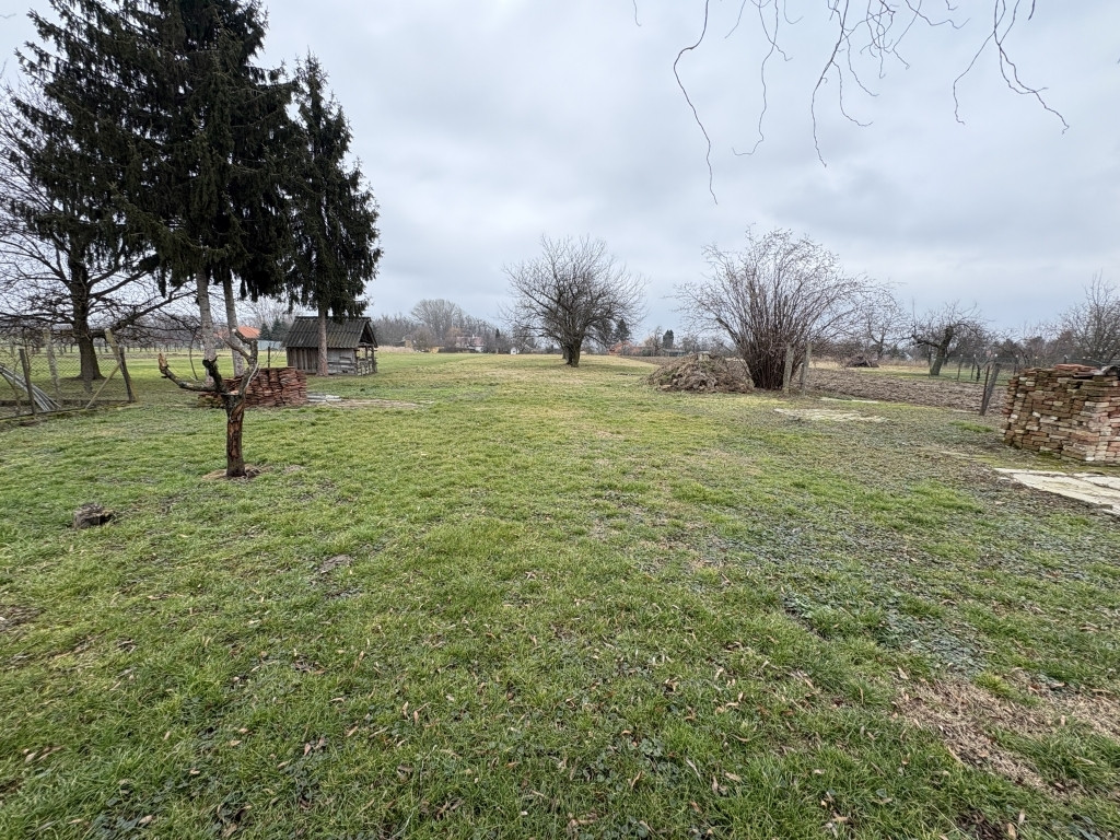 A nyugati tájolású, 3090 m²-es telek udvarral, kerttel, garázzsal, melléképülettel, tárolóval és pincével rendelkezik. A kertben gyümölcsfák találhatók, a terület gazdálkodásra alkalmas.