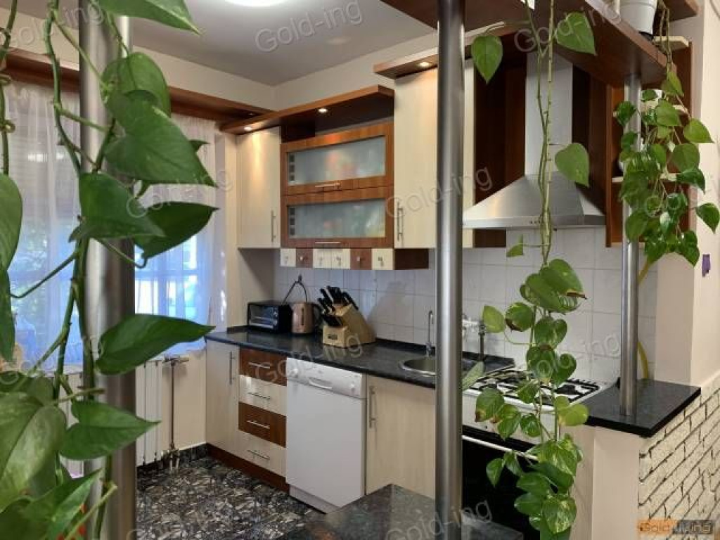 A kétszintes családi ház meglehetősen jó hangulatú, tágas. Az alsó szint, csak úgy mint a felső 91 nm. A bejárathoz érve egy kis előszoba fogad minket. Ebből a hatalmas amerikai konyhás nappaliba léphetünk. Itt bőven van hely a családi, baráti összejövetelekre. A konyhabútor egyedileg, méretre gyártott, gépesített, 12 éve újították fel. A hozzá tartozó kézi spájz kényelmessé teszi a sütést/főzést hiszen elegendő helyet biztosít mindennek.