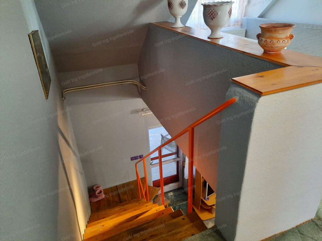 A földszinten a nappali mellett található egy hálószoba, és egy fürdőszoba, elegáns beépített sarokkáddal, így ha relaxálna egyet az otthon nyugalmában, kényelmesen megteheti. A fürdőszobát 10 éve újították fel. A felső szintre egy stílusosan kialakított csigalépcső vezet. Fent további 3 hálószoba, illetve egy mosdó található, valamint egy hangulatos kis erkély, ahonnan megkapó látvány nyílik a gyönyörű kertre.