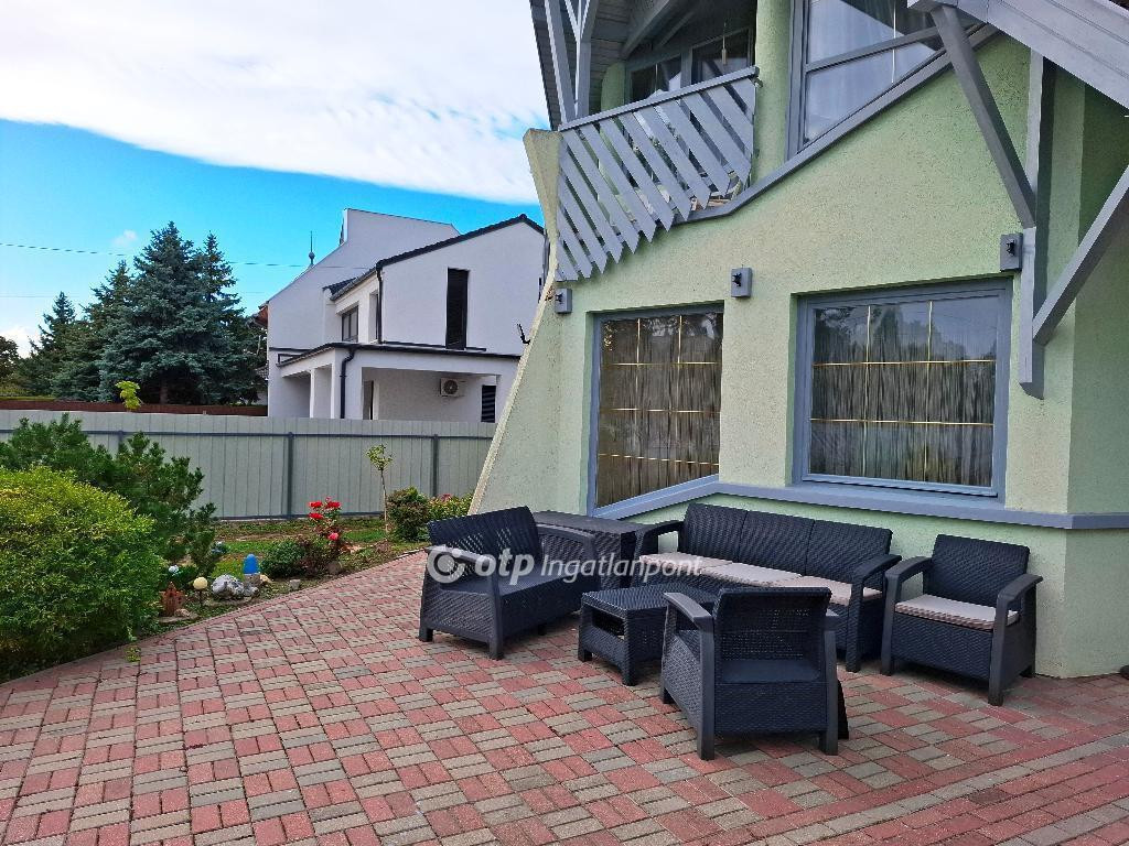 Békéscsabán 228 nm-es családi ház eladó. A tégla falazatú két szintes, nagyon jó állapotú ingatlan a városi sportcsarnok közelében, 984 nm-es telken helyezkedik el. A földszinten amerikai konyhás nappali, kamra, hálószoba, fürdőszoba, wc háztartási helyiség, közlekedő és lépcsőház kapott helyet. Ez az egység önállóan is használható, mert az emeleti rész külön bejárattal rendelkezik, ami zárt lépcsőházból közelíthető meg. Az emeleten további két nagy méretű szoba erkéllyel, mind két szobához fürdőszoba és gardrób tartozik, közlekedő és egy 20 nm-es konyha kapott helyet . A házban van még egy gépkocsi tároló, közvetlen bejárattal a fő épületbe. A főépület mögött 50 nm-es épület húzódik, amibe 20 nm-es garázs valamint egy 30 nm-es műhely található. Az otthon melegét gáz cirkó fűtés biztosítja a földszinten padlófűtés, az emeleten radiátorokon keresztül. A hálószobák padlószőnyegesek, a többi helyiség járólap borítású. A nappaliban légkondicionáló berendezés van felszerelve. A nagy méretű előkert, ami távol tartja az út zaját, szépen gondozott, benne pázsit és dísznövények húzódnak. A házat díszburkolat veszi körül, ami a terasz funkcióját is betölti. Az épület különleges, egyedi kialakítású, jó nevű mérnök tervezte. Akár otthon start 3%-os hitelre is megvásárolható. Ügyfeleinknek jogi és ingyenes pénzügyi szolgáltatást nyújtunk.