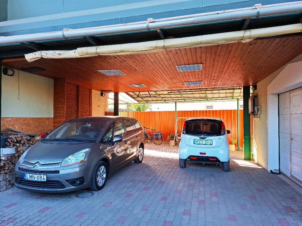 Békéscsabán 117 nm-es családi ház eladó. A két szintes, szigetelt könnyű szerkezetű ingatlan, csendes kertvárosi környezetben, 622 nm-es telken a kastélyszőlőkben helyezkedik el. A földszinten előszoba, amerikai konyhás nappali, kamra, fürdőszoba, wc, háztartási helyiség, míg az emeleten 3 félszoba, fürdőszoba, Wc, közlekedő és gardrób kapott helyet. Az emeleti szobák laminált parkettások, a többi helyiség hidegburkolatú. a nappaliban kandalló, az otthon melegét 10 Kw-os napelem biztosítja a földszinten padlófűtésen, az emeleten radiátorokon keresztül, ezért a rezsi minimális. Az épületbe 3 x 32 amperes villamos hálózat került bekötésre, illetve 3 db hűtő, fűtő klíma van felszerelve. A szépen gondozott kertben virágok, örökzöldek és szerszám tároló található. A fő épületet és a garázs épületet összekötő tetőterasz alatt két kocsi részére elegendő beálló van, ahol az elektromos töltés is elvégezhető. Nagyon jó állapotú és elrendezésű ingatlan, ahol a fenntartási költség minimális. Akár otthon start 3%-os hitelre is megvásárolható. Ügyfeleinknek jogi és ingyenes pénzügyi szolgáltatást nyújtunk.