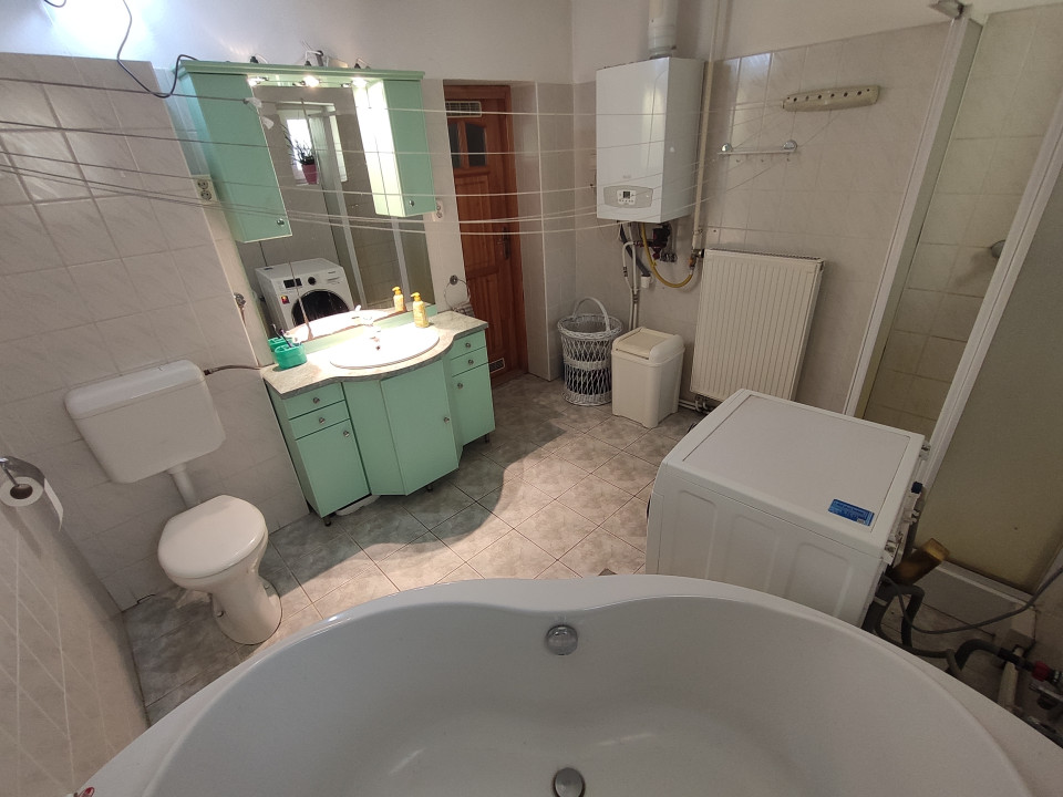 Ezekben nappali, kettő szoba, egy fél dolgozószoba, tágas fürdőszoba, külön WC, nagy étkezős konyha, kamra, közlekedő, öblös terasz, továbbá még egy szoba, gardrob és tusolós fürdőszoba WC vel lett kialakítva. A külső és belső nyílászárókat kicserélték. A fűtést újabb gáz cirkó kazán, a hűtést klíma biztosítja. A burkolatokat parketta, laminált parkrtta, és mázas kerámia alkotják. Az áramhálózatot fejlesztették. És a külső homlokzat szigetelt. Az udvar mérete nem nagy, rajta tárolók, és garázs található. Családiházas, nyugott, csendse környezet jellemzi, de mégsincs messze a városközponttól. Tehermentes, Az ár bizonyos határig alkuképes. Jobb állapotú ,kissebb Csereházat 35-38 millió Ft ig a megyeszékhelyen beszámítunk.