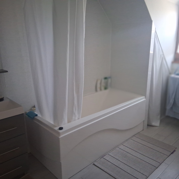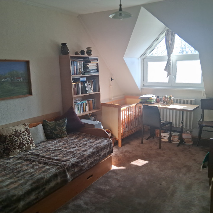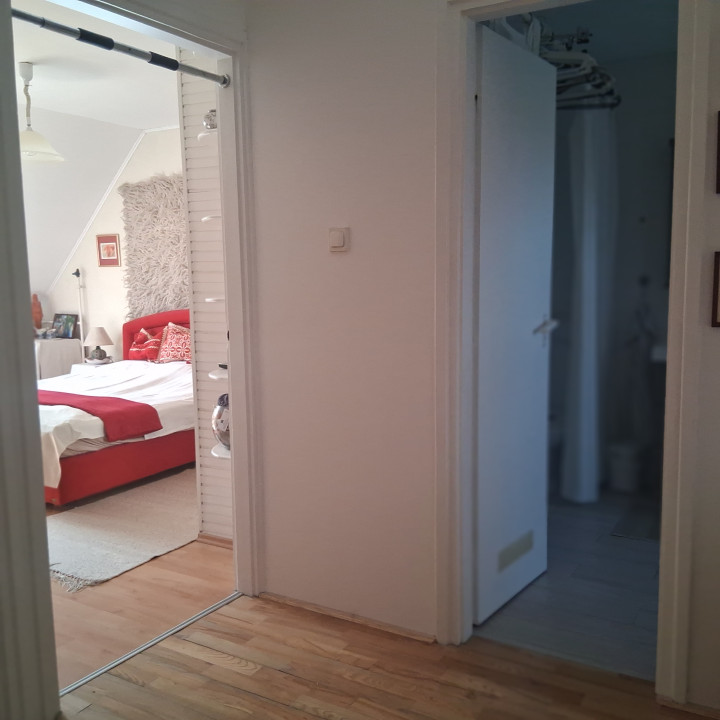 Az emeleten három külön nyíló szoba, és egy kádas fürdőszoba található.