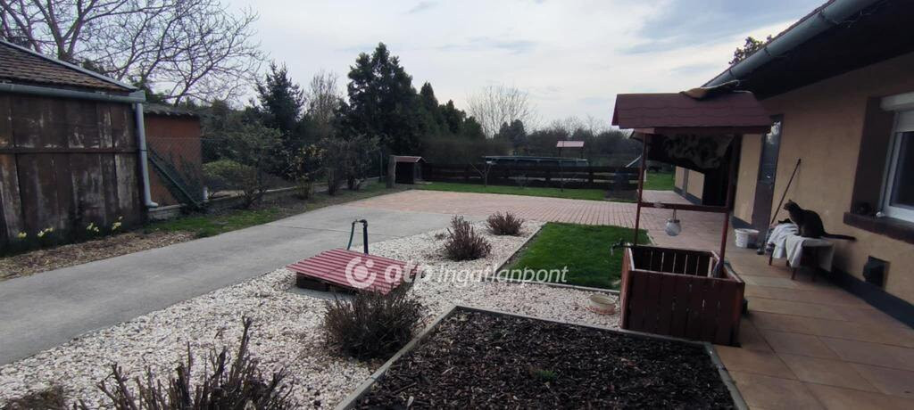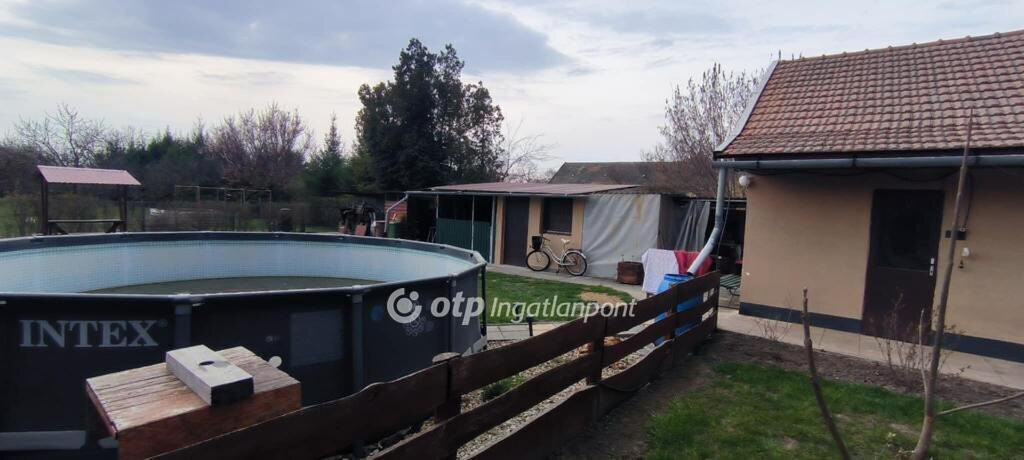 A hátsó kertben több TÁROLÓ segíti a kerti munkákat, a LOCSOLÁS FÚRT KÚTRÓL történik, a telket GONDOZOTT GYÜMÖLCSFÁK díszítik.