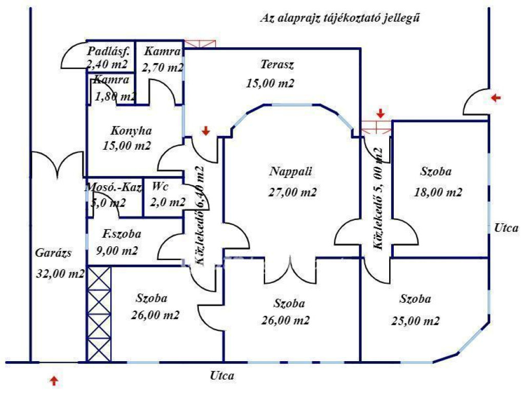 Békés vármegye, Békéscsaba belvárosában, a Munkácsy negyedben, saroktelken, polgári stílusban épült, 180 m2 alapterületű, 5 szobás családi ház a hozzá tartozó utcai bejáratú 32 m2 alapterületű garázzsal ELADÓ! A telek 585 m2 nagyságú. A ház 1925-ben épült, tégla falazattal. A tulajdonos 1994-ben elvégeztette az lakóépület talajnedvesség elleni vízszigetelését, valamint a teljes rétegrend kialakítást, és az azóta eltelt évek alatt is gondoskodott az ingatlan folyamatos karbantartásáról, ennek során, a ház észak felé eső homlokzati részét hőszigeteltette. A kifogástalan állapotban lévő tégla falazatú ingatlan helyiségei: nappali (27 m2) 4 szoba (26 - 26 - 25 - 18 m2) előszoba, közlekedők, konyha-étkező, kamra, sarokkádas fürdőszoba wc-vel, külön wc, mosókonyha, terasz, garázs, pince. A nappali és a szobák, valamint az előszoba és a közlekedők parkettázottak, a többi helyiség járólap burkolatú. Az ingatlan fűtése gáz-cirkó rendszerű, radiátoron keresztüli hő leadással. A hűtésről és igény szerint a fűtésről, légkondicionáló berendezés gondoskodik. A kert füvesített és automata öntözőrendszerrel felszerelt. A gépjármű(vek) az utcai bejáratú, elektromos működtetésű kapuval szerelt 32 m2 alapterületű garázsban helyezhető(ek) el. Kiváló elhelyezkedés, nyugodt környezet, igényes otthon vagy akár reprezentatív vállalkozás céljára is! Hívjon bizalommal a további információkért és a megtekintés egyeztetéséért, örömmel mutatom meg személyesen is ezt a kivételes ingatlant! ----------------------Az OTP Ingatlanpont teljes körű ügyintézéssel áll az eladók és a vevők rendelkezésére! A vásárlás finanszírozásában az OTP kedvező hitelkonstrukcióival tud segíteni. Ingatlant kereső ügyfeleink részére szolgáltatásaink és az ingatlanvásárlással, felújítással kapcsolatos hitel ügyintézése ingyenes. Az adásvételi szerződés megkötéséhez igény szerint megbízható ügyvédi közreműködést biztosítunk, és segítséget nyújtunk az adásvételhez kapcsolódó ügyek intézéséhez.