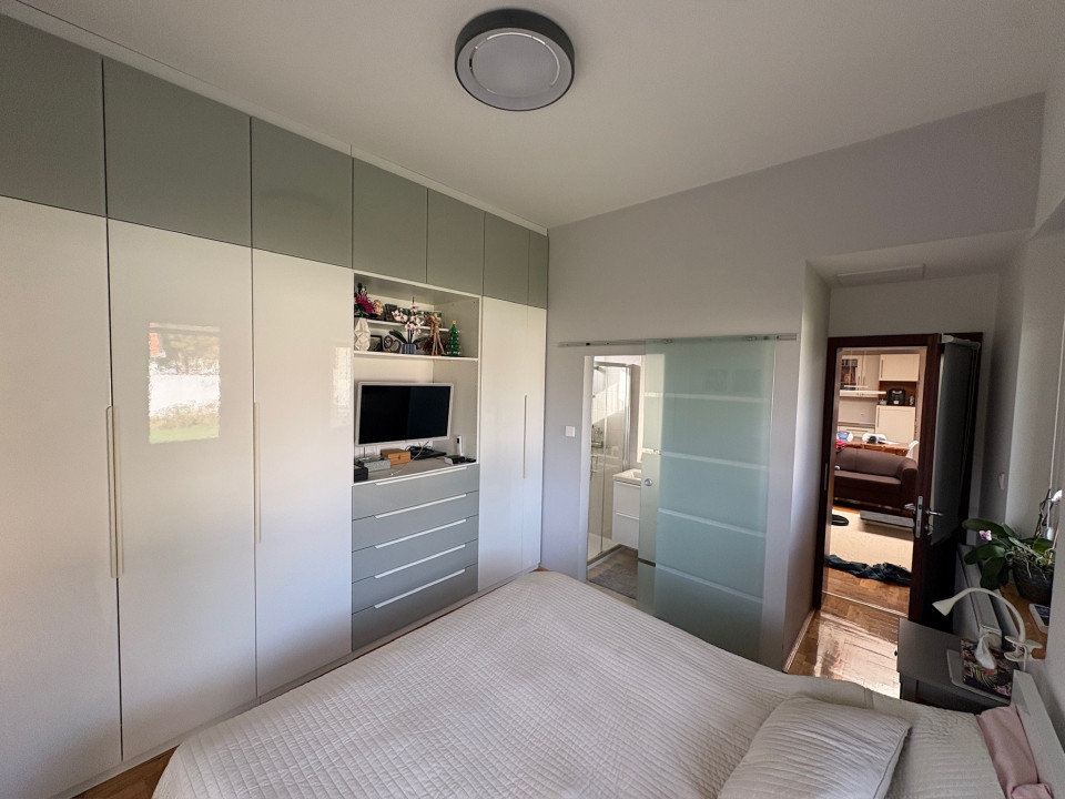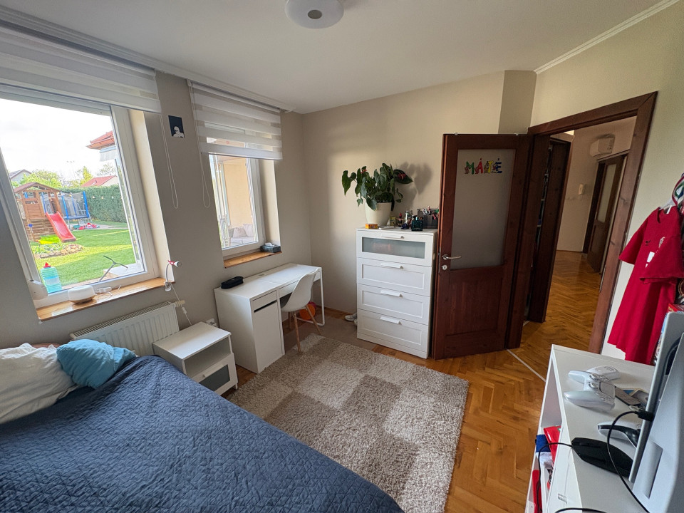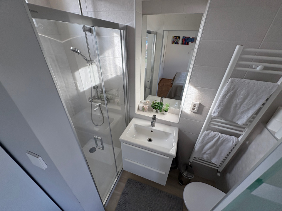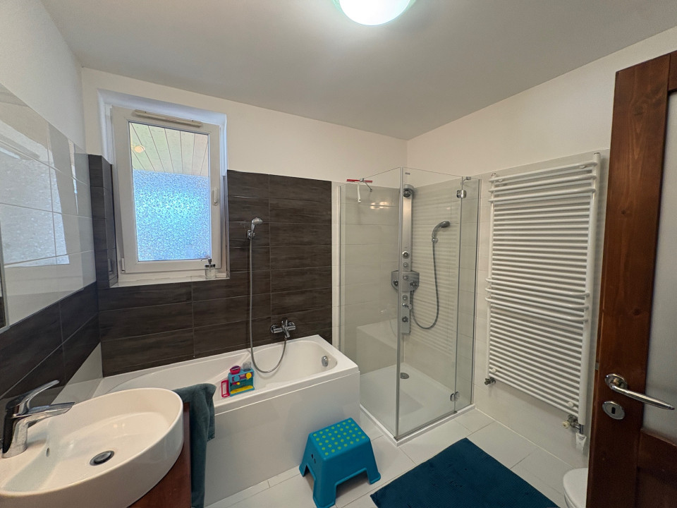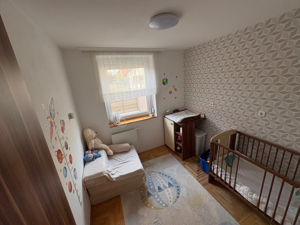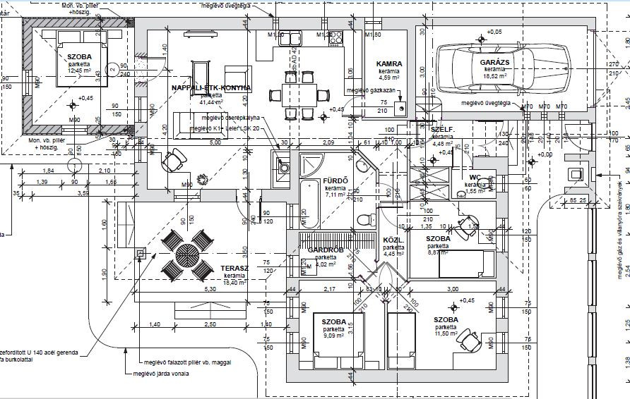 Eladó Békéscsabán a belváros közvetlen közelében (I. kerület), 2008-ban saját megrendelésre épült családi ház. A fő épület része egy nettó18 m2 területű (utcára nyíló) fűtött garázs (Hörmann kapuval), és egy szintén nettó 18 m2 alapterületű fedett terasz. A terasz előtti rész további hő elleni védelmét egy motoros árnyékoló egészíti ki. A fő falazat Porotherm Profi 44 cm vastag téglafal. 2021-ben bővítve lett egy szoba+saját fürdőszobával (Ravak zuhanyatálca és ajtó), amely gyakorlatilag nem kivehető az eredeti alaprajzhoz képest (így jelenleg 1 amerikai konyhás nappali + 4 hálószoba, 2 fürdőszoba WC-vel + 1 WC mosdóval, ÖSSZESEN NETTÓ 112 m2 lakórész) A fő fürdőszobában 2026-ban a fürdőkád előlapja, a zuhanytála (Ravak) és a zuhanykabin (Radaway), mosdócsaptelep cserélve lett. Minden csaptelep, beépített wc, zuhanypanel GROHE márkájú. A konyha teljesen felszerelt, új mosogató gép és sütő. A födém szintén 2021-ben meg lett nyitva, így 4 darab VELUX tetőtéri ablakkal természetes és egyedi megvilágítást kapott a nappali szoba, minden tetőtéri ablakhoz külső, távirányított sőtétítő roló tartozik. Minden ablakon redőny+rolós szúnyogháló. Szintén található egy cserépkályha (szigetelt Schiedel kéménybe kötve), amely közvetlenül a teraszajtó mellett található, így minimális szemeteléssel utánozhatatlan meleget varázsolhatunk a téli napokon. A terasz 2022-ben 4 évszakos, eltolható üvegfal rendszerrel lett ellátva (valamint infra hősugárzókkal), így az év 365 napjában használható. A házban 4 darab (1-3 évesek) inverteres klíma, napelem (HUAWEI tárolós rendszer) található. A fűtési rendszer radiátorokon keresztül történik, az ehhez szükséges meleg vizet és a használati meleg vizet egy szintén 2022-ben beépített Ariston kazán (külső hőmérséklet követővel) biztosítja. A kamrát, fürdőszobákat és a WC helységet leszámítva a teljes lakótérben csaphornyos fa parketta található. A padlás legnagyobb részében burkolt, járható. Az udvar parkosított, öntöző rendszer üzemel, két tároló helység található. Az udvar több helyen (összesen kb. 120 m2) térburkolattal ellátott. Az udvart teljes hosszában egy összefüggő, teljesen zárt ciprus sövény takar a maximális nyugalom érdekében (a kerítés oldalán teljesen körbejárható). Az udvar közepén egy, a tavalyi évben először virágokat hozó kaliforniai tulipánfa található. Építéskor az udvar 25 cm mélyen humusz feltöltést kapott.