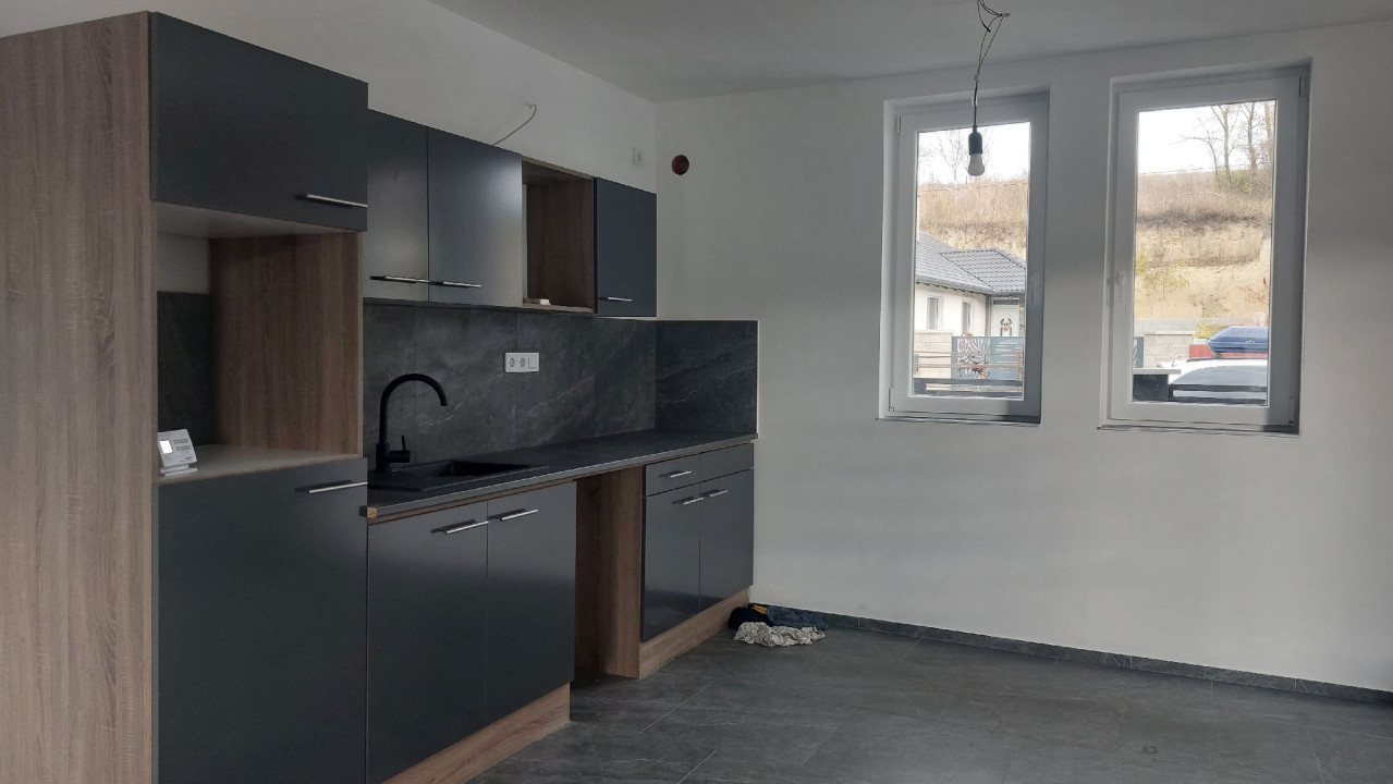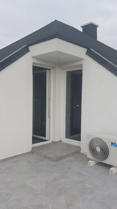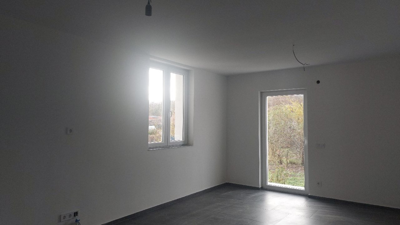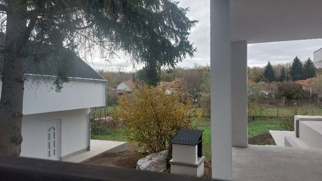 A kisebbik ház alsó teraszos részén nagy szoba, konyha kis mellékhelyiséggel. Felső szinten nagy szoba és fürdő található. A két ház a közös kertje leválasztható külön bejárat az utcáról mindkét kertrészre.