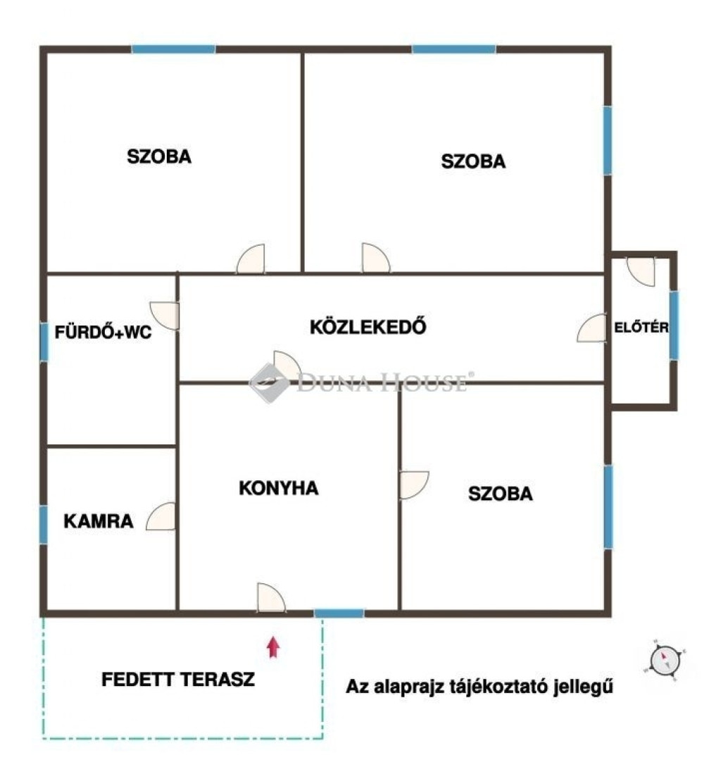 Belső elrendezése jelenleg 2 külön nyíló szobával lett kialakítva, de 3 külön szoba is kialakítható egy ajtó berakásával.