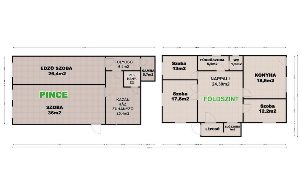 A lakóépület földszinti alapterülete 122 m? továbbá ugyanekkora, 122 m?-es igényesen kialakított, fűthető és lakható pincehelyiséggel rendelkezik. Az ingatlan minden extrával felszerelt kényelmes és magas színvonalú mindennapi használatra kialakítva.