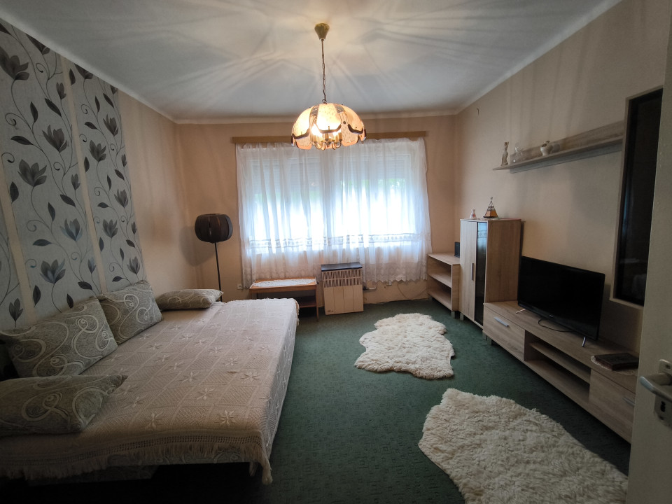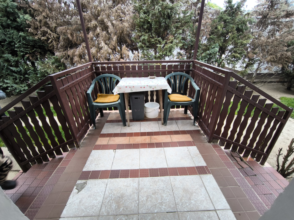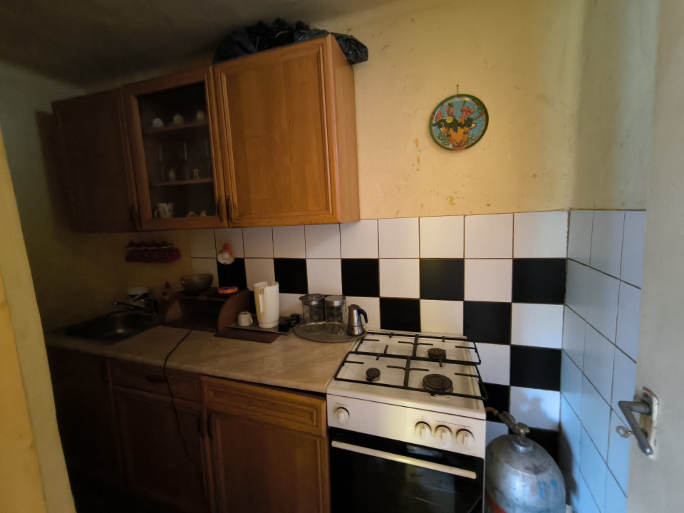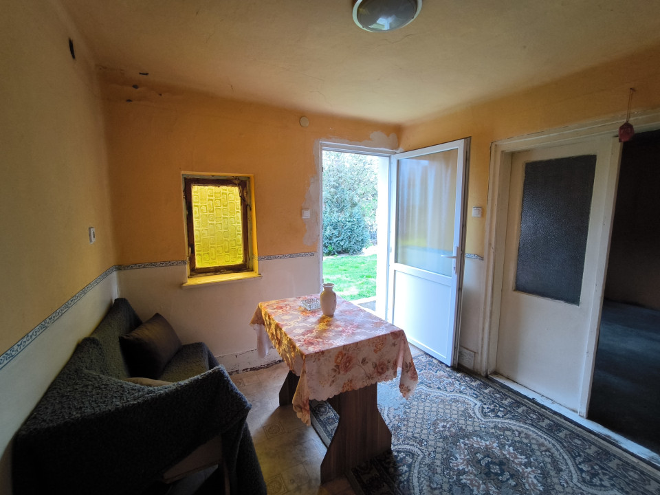 A másik épület 40 nm, melyben egy szoba, konyha, étkező kapott helyet. nyílászárói cserélve vannak. Fűtése hordozható kályhával megoldott.