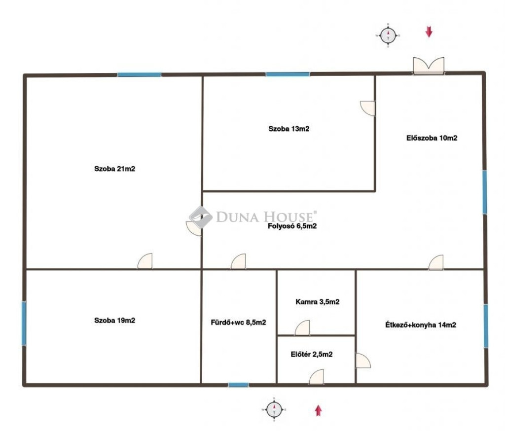 A ház három tágas szobával, külön étkezővel, fürdőszobával, valamint egy nagy előszobával és széles folyosóval rendelkezik, melyek kényelmes, jól élhető tereket biztosítanak a mindennapokhoz.