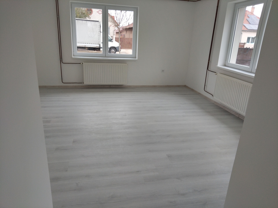 Konyhàban minőségi ,modern 60x60 jàrólapok kerültek lerakàsra,új fali csempe matt fehér színben..kialakításra került mind elektromos mind gáztűzhely használata is...nappali 25nm és 14nm ebédlő halvàny északi szürke laminàlt padló burkolattal ...ebédlőből teraszajtón àt kis kàvézó teraszra lehet kiülni ...