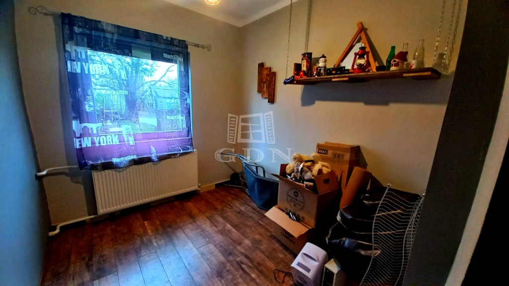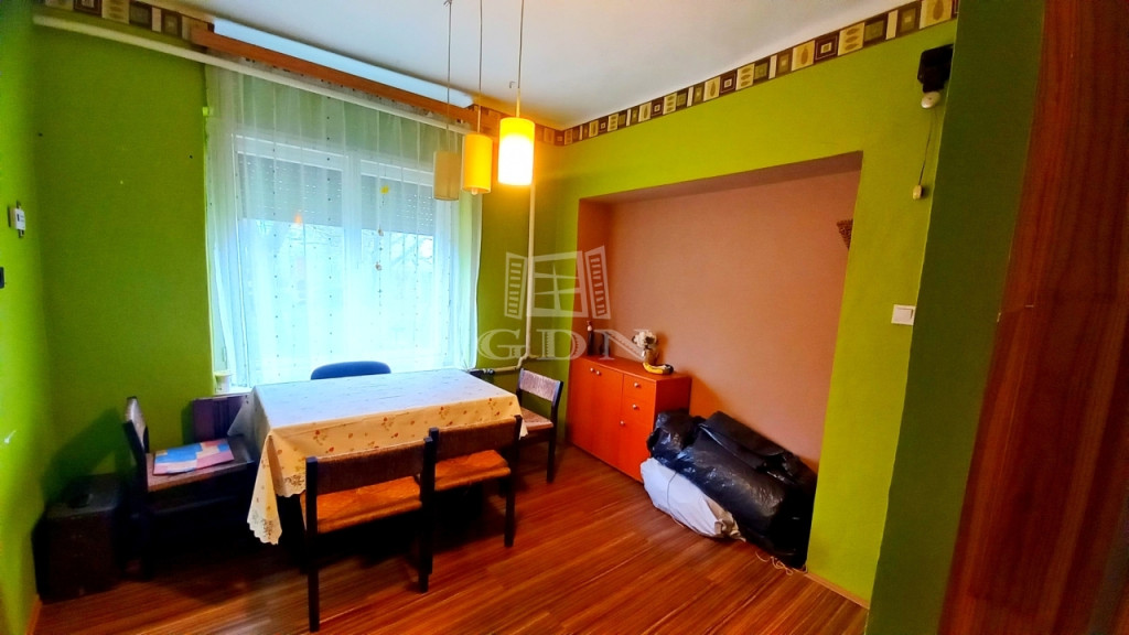 Két szoba, egy étkező és egy félszoba található az ingatlanban. A helyiségekben mindenhol radiátorok vannak. A szobák nagyméretű, korszerű nyílászárókkal felszereltek, az utcai ablakok redőnyösek. Az ingatlan fűtése vegyes tüzelésű kazánnal megoldott.