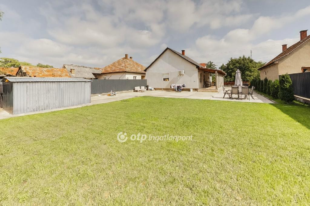 Az ingatlan a település központjához közel, aszfaltozott út mentén, csendes mellékutcában található 557 m2-es részben betonozott, részben fűvel beültetett, rendezett telek tartozik hozzá, az öntözésre fúrt kút nyújt megoldást. A körbekerített udvar végében 1 fém kerti tároló, és 1 kutyakennel kapott helyet. Az utcafrontot dekoratív vaskerítés szegélyezi. A házon kívül-belül a felújítási munkálatok 2018-től folyamatosan zajlottak. A szilikát szerkezetű lakóépület külső falait szigetelték, a cseréppel héjalt tető teljes mértékben megújult. A délkeleti tájolású, világos terekkel rendelkező házba 19 m2-es, fedett, tornácos teraszon keresztül jutunk be. Az előtérből tágas nappali-konyha-étkező (26 m2) nyílik, amelyből továbbá 2 külön bejáratú hálószobába (12 m2 és 18 m2), és 1 fürdőszoba-WC-be érkezünk. A szobákat laminált parkettával burkolták, a többi helyiség padlóját kerámialap borítja. Az összes nyílászáró hőszigetelt üveggel ellátott, egy részük az eredeti fakeretes maradt, többségüket hőszigetelt műanyagra cserélték, az ablakok elé szúnyoghálót, és redőnyt szereltek fel; az egyes helyiségeket fából készült ajtók választják el egymástól. Az otthon melegéről 1 db hűtő-fűtő klímaberendezés, valamint 1 db fatüzelésű kandalló gondoskodik a hideg hónapokban. A házban cserélték a teljes víz-, csatorna, és áramhálózatot, a belső falakat gipszkartonnal vonták be. A házat további 2 szobával tervezték bővíteni, az ehhez szükséges alap már elkészült az udvaron. Az ingatlan per-, és tehermentes, állapotát tekintve újszerű, azonnal költözhető. Füzesabonyi családi házra való csere értékegyeztetéssel szóba jöhet!