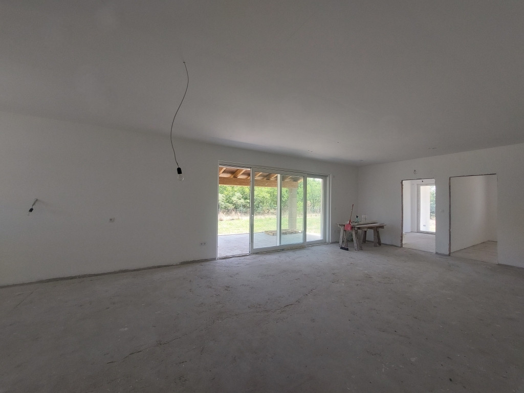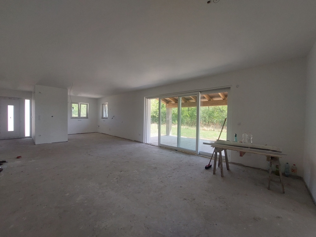 Műszaki tartalom: Az épület beton sávalapra épült, fő falai 30-as kerámia tégla, külsőleg 15 cm-es grafitos szigeteléssel borítva, színezve, válaszfalai 10 cm-esek. Fa födémes, 35 cm-es kőzetgyapot szigeteléssel ellátott. Kontyolt nyeregtetős, melyen barna színű Bramach cserépfedés található. Az ingatlan fűtési rendszere hőszivattyúra lett tervezve, padlófűtés hő leadással, napelem rendszer kiépítve. Közművek közül villany, csatorna és víz kerül bevezetésre, gáz nincs. Nyílászárói műanyagok. (Részletes műszaki dokumentációt, az ingatlan személyes megtekintését követően e-mailben tudunk biztosítani.) Az épület befejezése új tulajdonosán múlik, hiszen saját igényeinek megfelelően tudja a belső enteriőrt kialakítani.