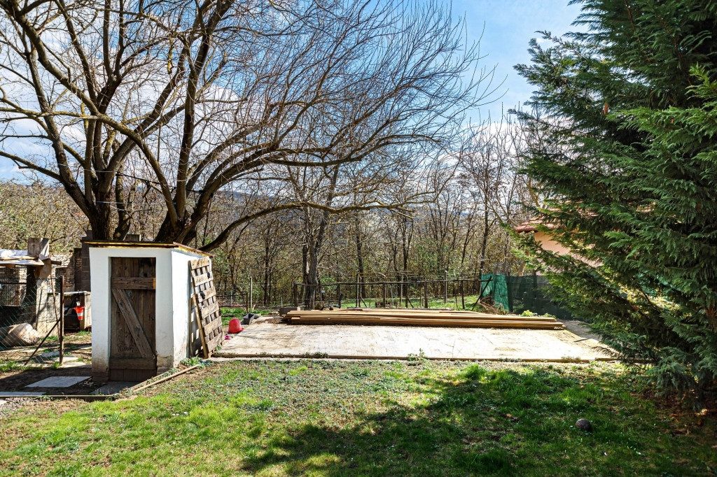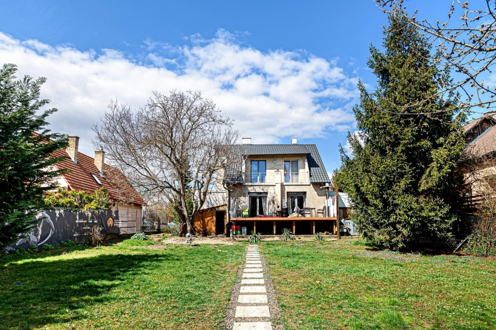 Az épület 1989-ben épült, jó állapotú, két szintes családi ház, mely egy 1096 nm-es teleken helyezkedik el, hátsó kertkapcsolat az erdővel és a Forrás patakkal. Az ingatlant különálló garázs egészíti ki, amely biztonságos parkolást biztosít, a ház előtt pedig 4 autó parkolásának kialakított parkolási lehetőség adott. A ház téglából épült, szigetelt és a felújítást követően a színezés az új tulajdonos elképzelései szerint valósulhat meg... A nappaliból nyíló nagy délnyugati fekvésű, terasz 20 nm-es, közvetlen kertkapcsolattal rendelkezik egy hatalmas diófa árnyékában.