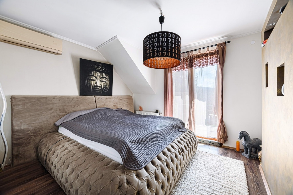 A 258 nm-es ház belső kialakítása praktikus és tágas, négy szobája van, ami ideális a nagyobb családok számára. Az elektromos fűtés modern és költséghatékony megoldást nyújt, a jól beépített tetőtér extra teret biztosít. A helyiségek világosak és szellősek, a délnyugati tájolásnak köszönhetően még a téli hónapokban is napfényesek. A belső tér a saját ízlésének megfelelően alakítható át. A búbos kemence igazán hangulatos életérzést kelt és kiváló meleget biztosít használata során.Ezen kívül kandalló is található a házban, mely szintén egy plussz fűtési lehetőséget és hangulatot is biztosít.