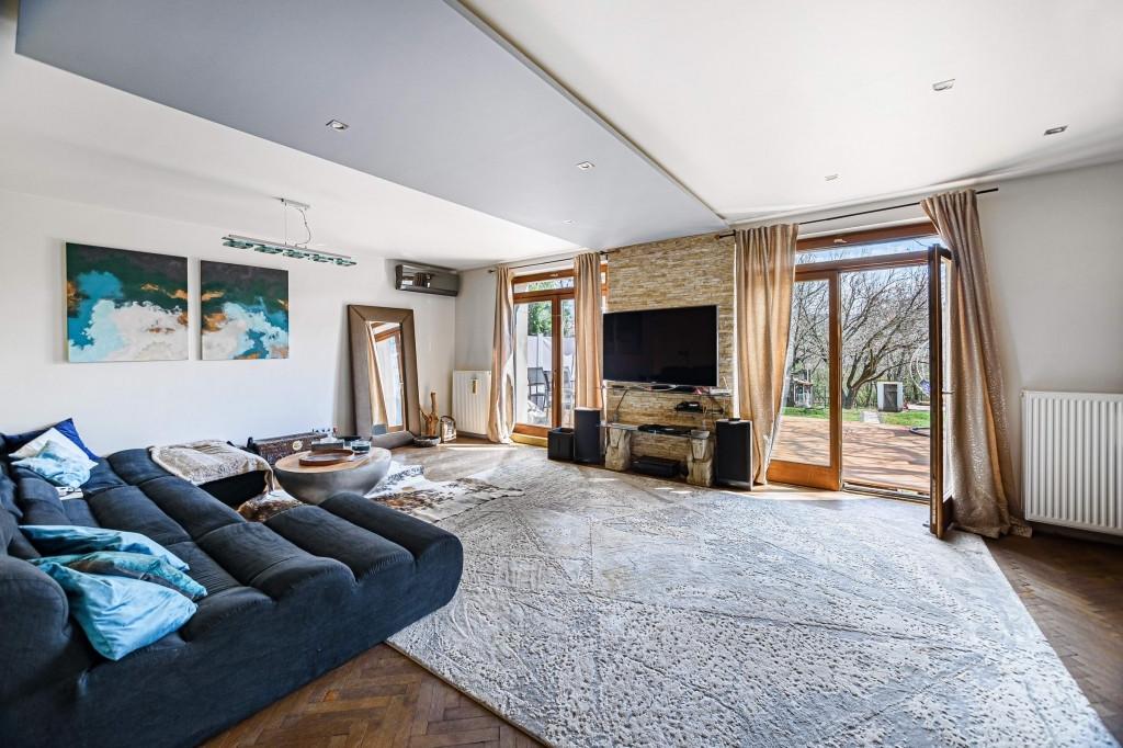Tágas, modern, kertre néző kilátással.