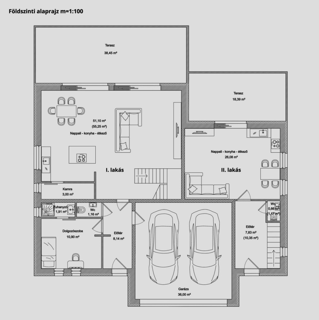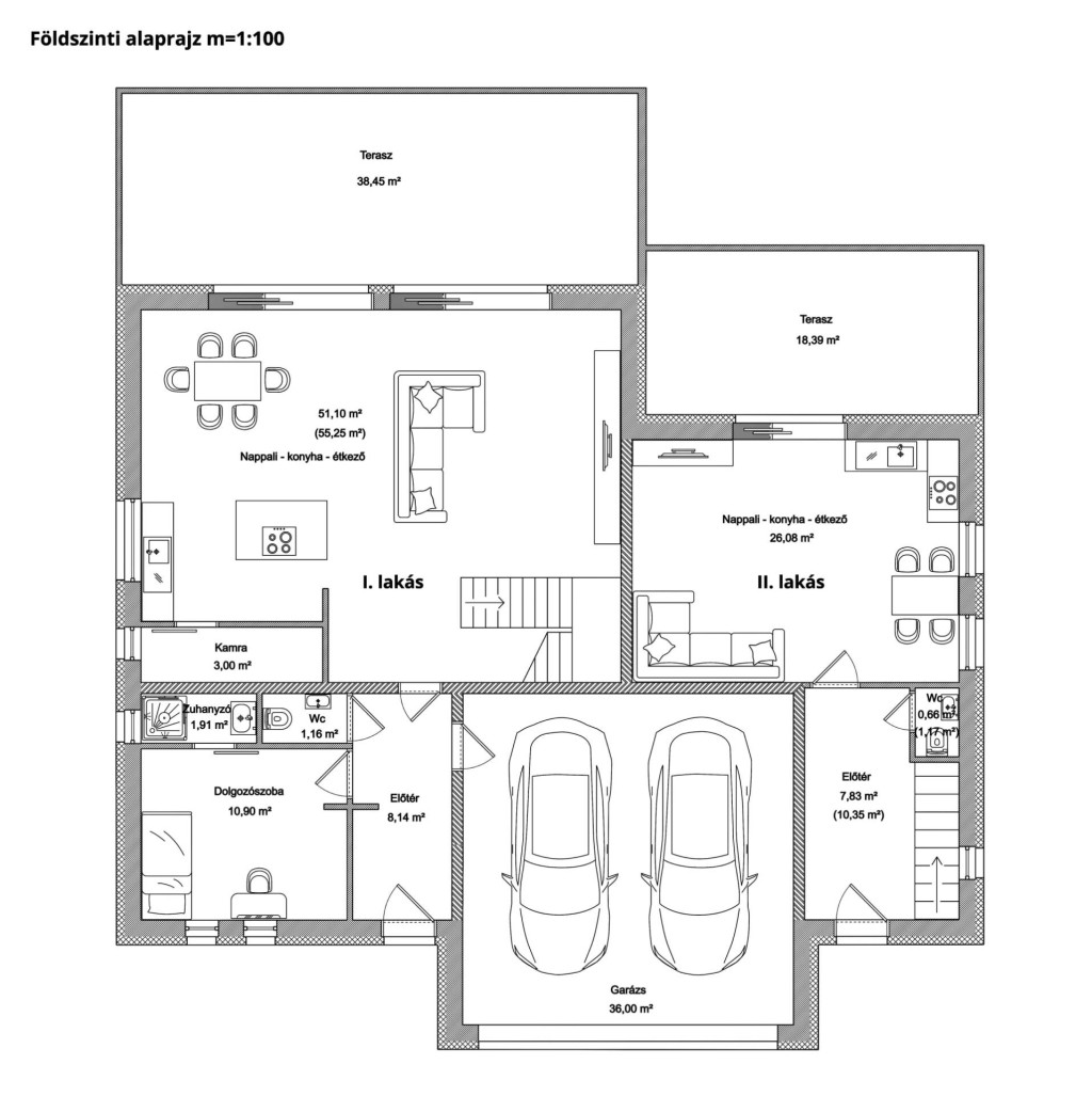 I. LAKÓEGYSÉG – a nagyvonalú élettér (157 m² + 36 m² garázs+38 m2 terasz, 18 m2 erkély)