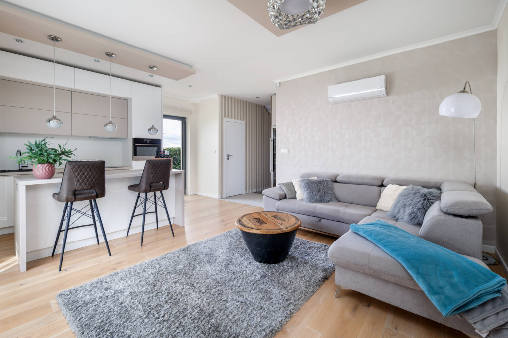 -fűtés és meleg víz ellátást kondenzációs kazánok biztosítják, padlófűtéssel, beépített mennyezeti hűtő-fűtő klímákkal