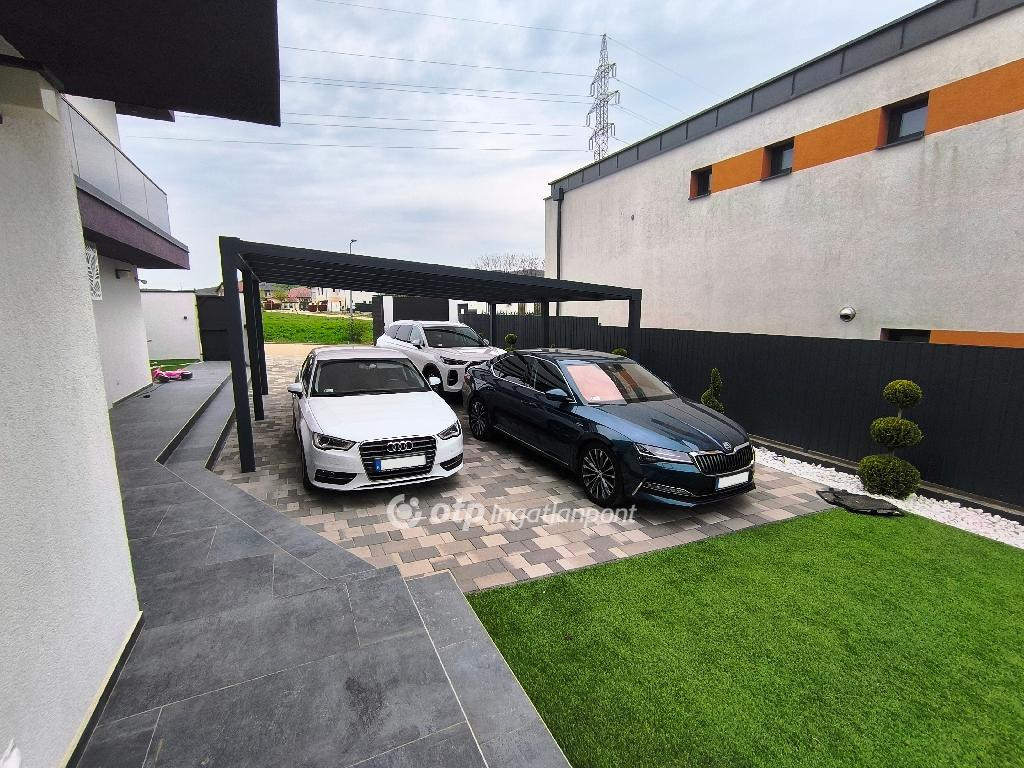 Biatorbágy Szarvasugrás lakópark kertvárosi részén, a Bia Korzóhoz közel eladó egy bruttó közel 260 m2-es újszerű minimál stílusú, luxus családi ház egy 632 m2-es önálló telken.