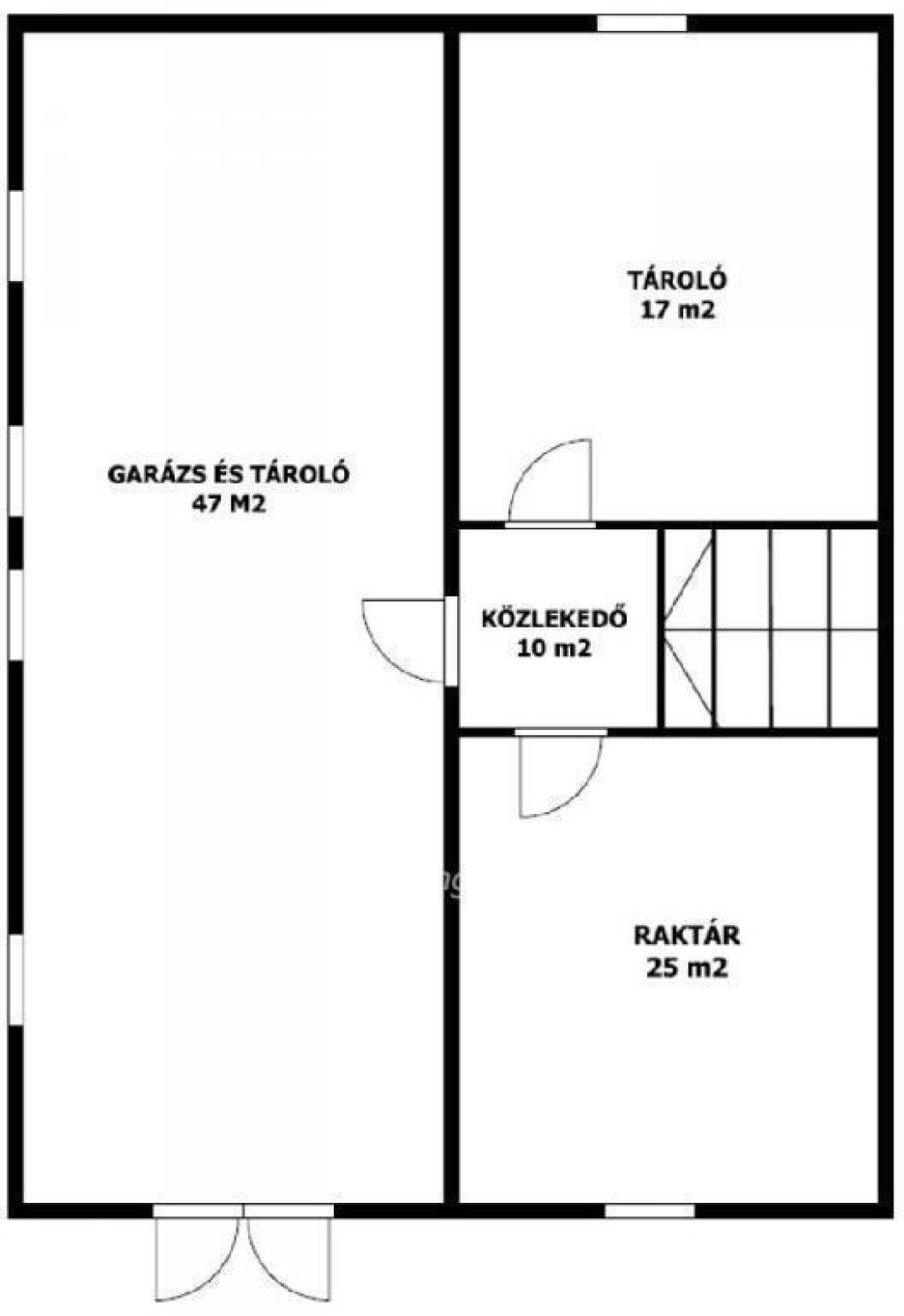 Az épület alatt található szuterénszinten helyezkedik el a garázs (utcáról közvetlenül megközelíthető) és két tároló.