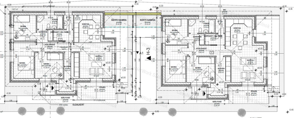 A Szolnoki CasaNetWork ingatlaniroda megvételre kínál Bicske központi, mégis meglepően nyugodt, zavartalan utcájában kettő darab, külön helyrajzi számon nyilvántartott ikerházat. A házak egy telken (800 nm), de teljesen különállóan, egymástól tárolóval elválasztva épülnek, így biztosítva a privát életteret és a nyugalmat. Jelenleg építés alatt állnak, a várható befejezés ideje 2026.december vége.Hasznos alapterületük külön-külön 92 nm, a hozzájuk tartozó kertrész 400-400 nm. A modern és praktikus elrendezés a következőket tartalmazza:Hatalmas, világos nappali-konyha-étkező egy légtérben, melyek nagyméretű teraszajtókon keresztül közvetlen kapcsolatban vannak a kerttel.3 külön nyíló hálószobafürdőszoba WC-vel és külön WCHáztartási helyiségMinőségi építési technológia és korszerű megoldások:porotherm tégla falazat, ytong válaszfalakszigetelt betonlalp, aljzatszigetelés, 20 cm külső és 25 cm fődém szigetelés.hőszivattyús padlófűtés, 2 fázis/40 Amper elektromos hálózat, H tarifaműanyag, 3 rétegű hőszigetelt nyílászárókklímához kiépített vezetékekcserépfedéskülső színezés modern fehér-antracit összeállításbanA hideg és meleg burkolatok választhatók, a vételár a teljes kulcsrakész átadást tartalmazza. Önnek már csak be kell költöznie. Kiváló lokáció, kellemes, romantikus környezet:A házak mögött terül el a Szent-László patak környéki zöldterület, kellemes kiránduló, sétahely.vasútállomás, buszmegálló, iskola, óvoda, játszótér, étterem, rendelők, élelmiszerboltok gyalog 10 perc távolságon belülBudapest és Tatabánya fél óra autóútRendezett környék, csendes, barátságos szomszédság Amennyiben a fenti #155806428-as azonosító számú eladó családi ház, vagy bármely kínálatunkban található ingatlan felkeltette érdeklődését, kérem hívjon bizalommal!/A hirdetésben szereplő információk a megbízótól kapott adatok alapján készültek./Irodánk teljes körű szolgáltatással áll ügyfelei rendelkezésére: hitelügyintézés, ügyvédi szolgáltatás, ingatlan értékbecslés, energetikai tanúsítvány készítése.CasaNetWork - Ingatlanban otthon vagyunk!