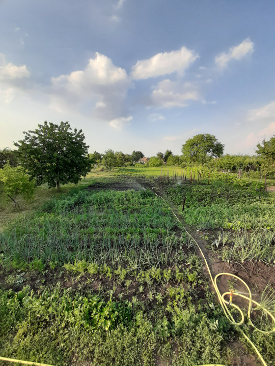 A telken sok gyümölcsfa, diófa és szőlőtőke található.
