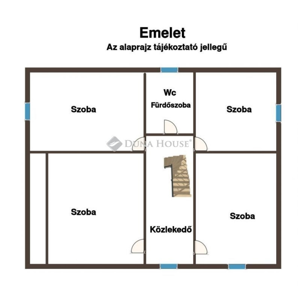 A földszinten 3 szoba, tágas konyha étkezővel, fürdőszoba és WC található, míg az emeleten 4 szoba és egy fürdőszoba kialakítására alkalmas helyiség áll rendelkezésre.