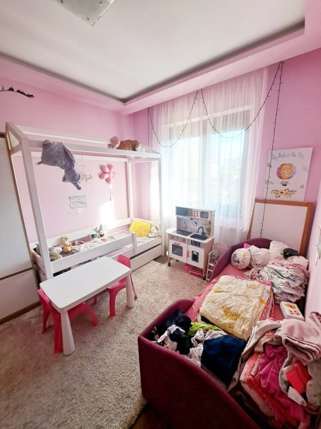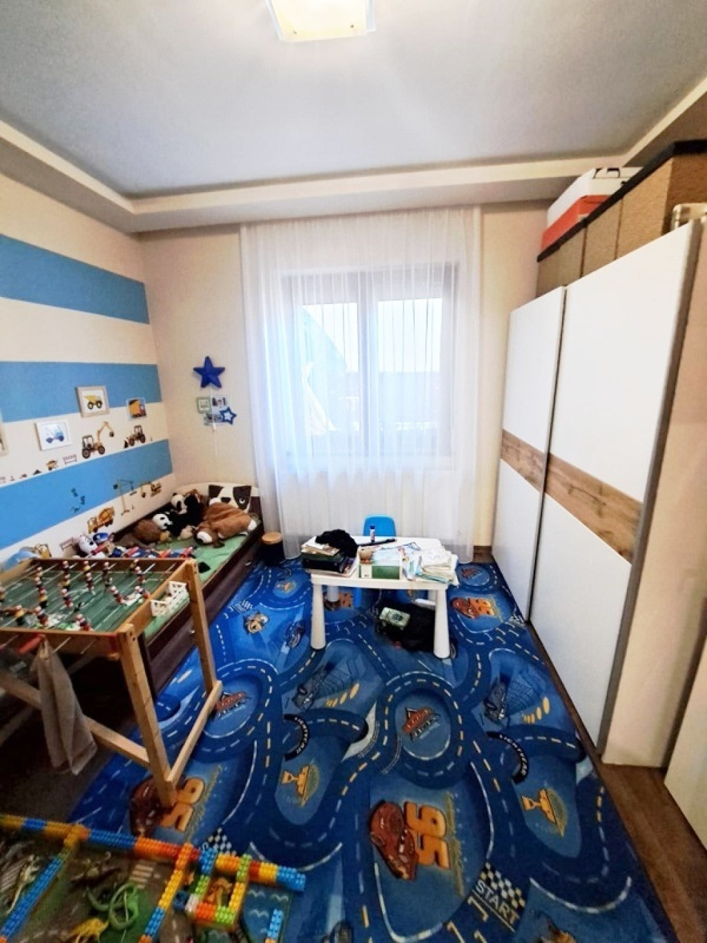 Helyiségei: amerikai konyha nappali, 3 külön bejárattal rendelkező szoba, fürdőszoba, wc, spájz, előtér, kazánház, terasz.