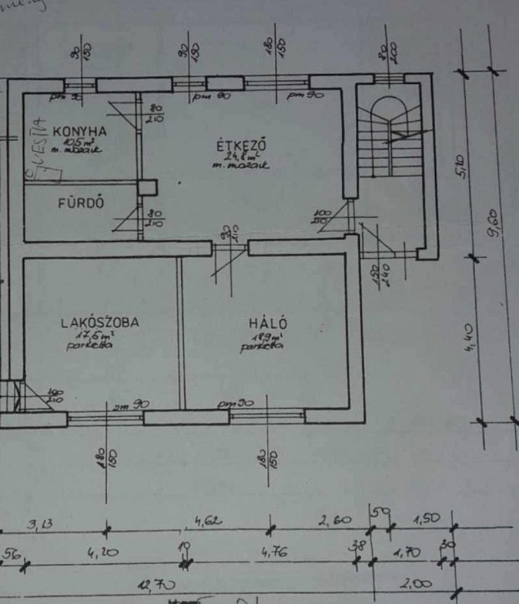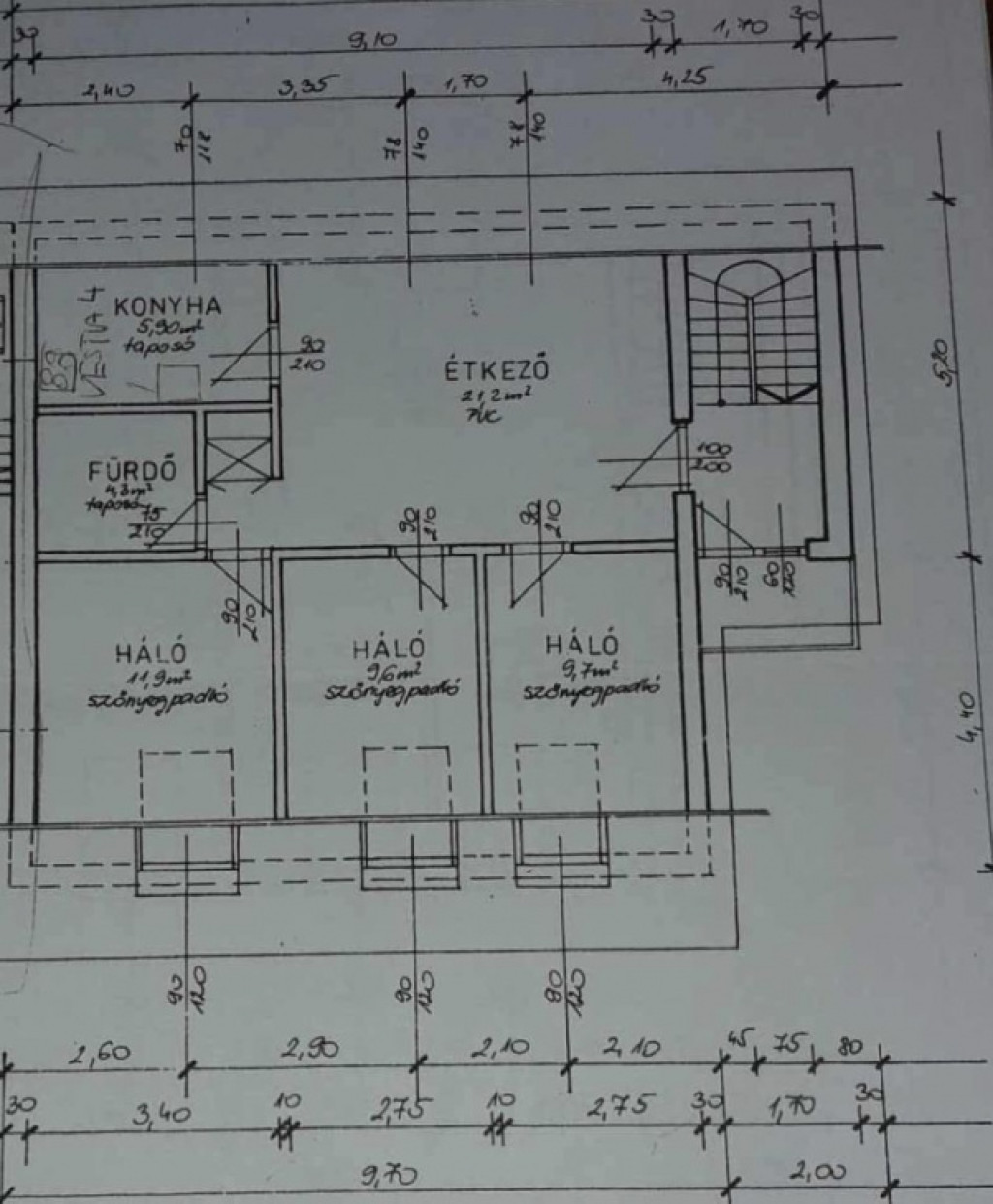 a) földszinti lakás: 76 m2 (2 db hálószoba, nappali-étkező, konyha, wc-fürdő)