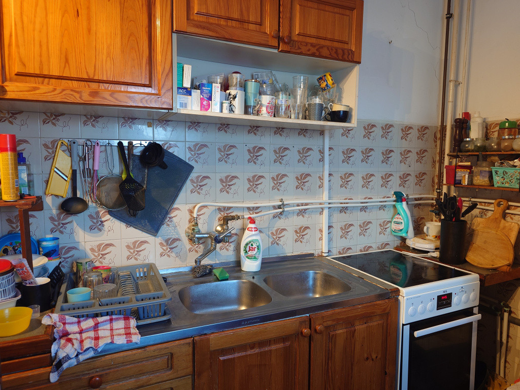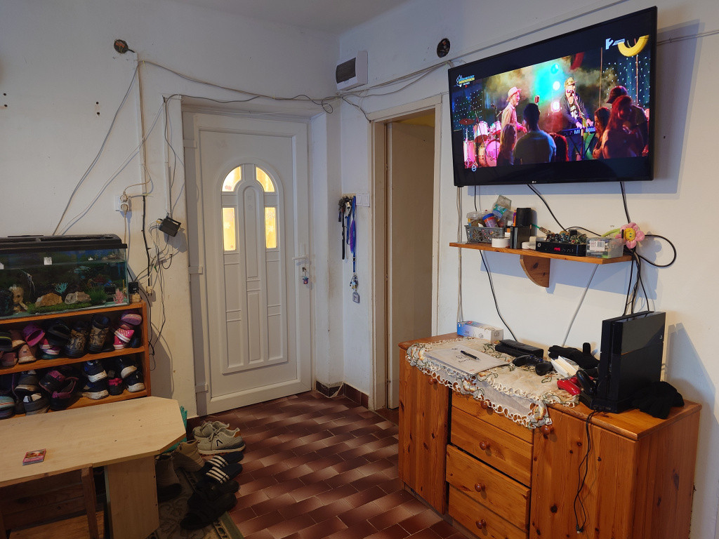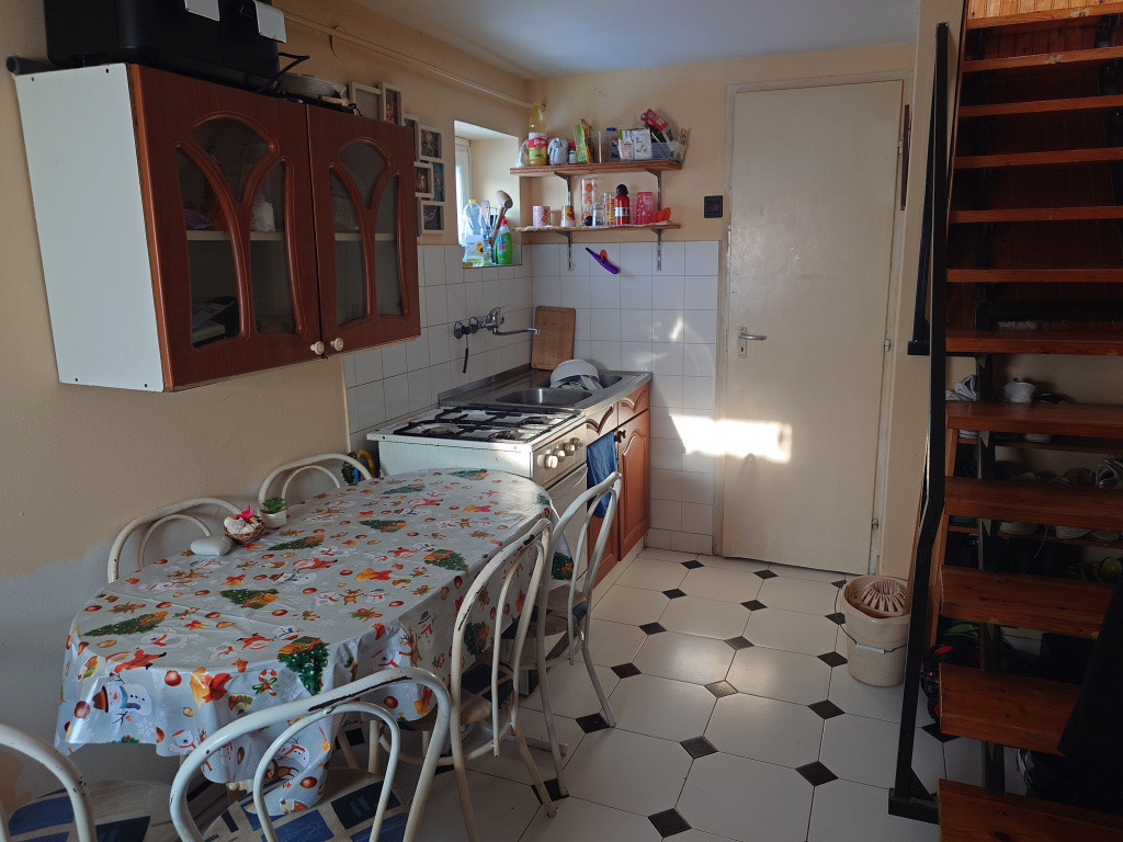 b) földszinti kis lakás 32 m2 (nappali-étkező, 2 db félszoba, konyha, wc-fürdő)