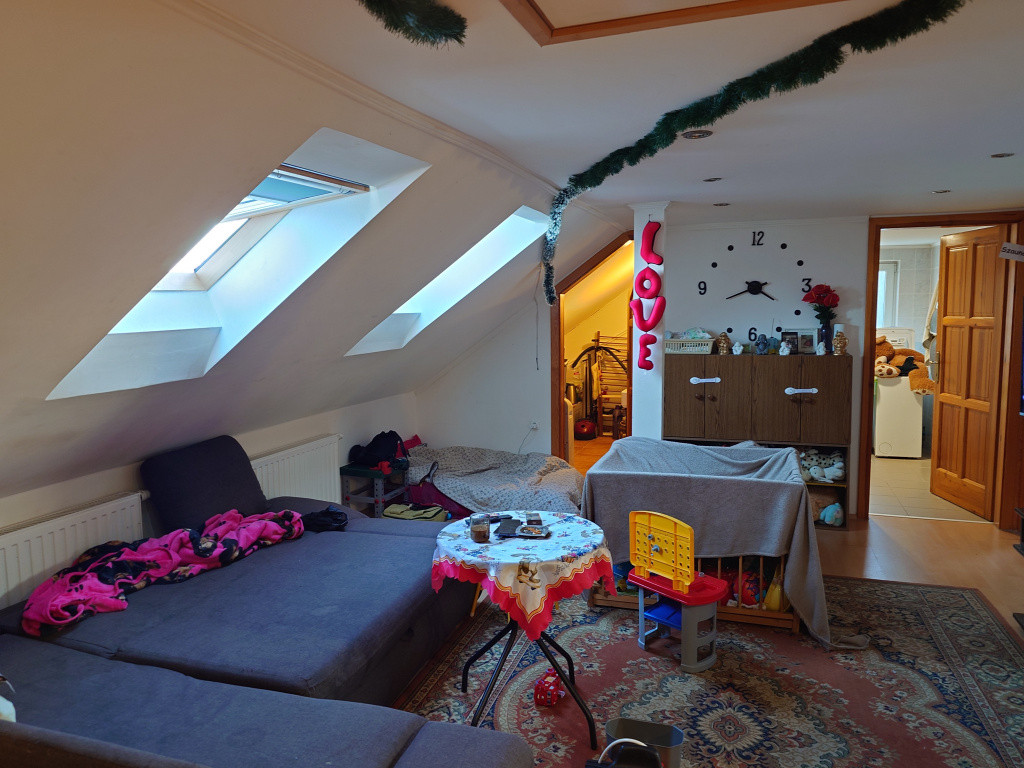 A ház emeleti szintje nettó 60 m2 (az 190 cm feletti részt tekintve).