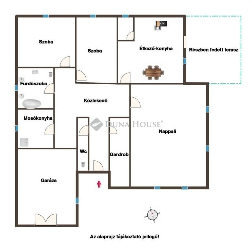 Nagy nappali - konyha-étkező - spájz - 2 hálószoba - fürdőszoba - WC - gardrób - mosókonyha - 15 m²-es közlekedő - 30 m²-es terasz