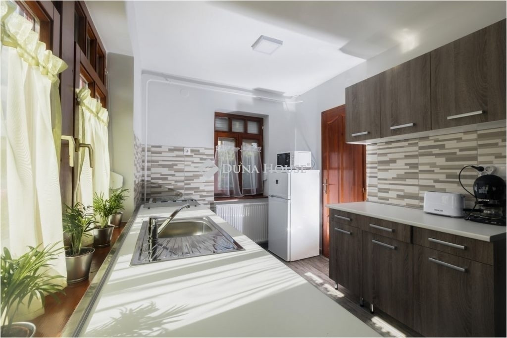 Eladó 3 apartmanos, kétszintes családi ház Bogácson Kiváló befektetési lehetőség!Borsod megyében, a festői szépségű Bogácson eladó egy tágas, három apartmanos, kétszintes családi ház, amely nagyszerű választás lehet azok számára, akik vendéglátó tevékenységben gondolkodnak, vagy olyan befektetést keresnek, amely folyamatos bevételt termel. A ház egész évben folyamatos forgalmat generál, hiszen az apartmanok mindig keresettek a turisták körében.Főbb jellemzők:A földszinten egy nagyobb, többhelységes apartman található, amely kényelmes életteret biztosít.Az első emeleten két különbejáratú apartman saját fürdőszobával.Közös, tágas konyha és étkező a családi összejövetelekhez.Az udvarban parkolási lehetőség, biztosítva a kényelmes parkolást.Közös fedett terasz grillezési lehetőséggel és pihenőhellyel.A különálló kis épületben jakuzzi és szauna található, ideális a relaxációra.Ingatlan mérete:A ház hasznos lakótere 183 m², tágas életteret biztosítva a családoknak és vendégeknek egyaránt.A telek területe szintén 712 m², rendezett és karbantartott udvarral, amely térkövezett és parkosított.Befektetési lehetőség:Ez az ingatlan remek befektetési lehetőséget kínál, mivel folyamatosan látogatják a vendégek, így garantált, stabil bevételt biztosít annak, aki apartmanos vendéglátásra szeretne építeni.Ingatlan állapota:Az ingatlan állapota kiváló, mind kívülről, mind belülről. 2019-ben teljes körű felújításon esett át, így az ingatlan azóta újszerű állapotban várja új tulajdonosát. Az udvar szépen térkövezett és parkosított, a környezet rendezett és esztétikus. Ezek a képek magukért beszélnek!Elhelyezkedés:Bogács, Borsod vármegye egyik legkedveltebb üdülőhelye, híres termálvizes fürdőjéről és gyönyörű, zöld környezetéről. Ideális helyszín a pihenéshez, kikapcsolódáshoz és nyugodt környezetben történő szórakozáshoz.Ne hagyja ki ezt a remek befektetési lehetőséget! További információkért és megtekintésért keressen minket!