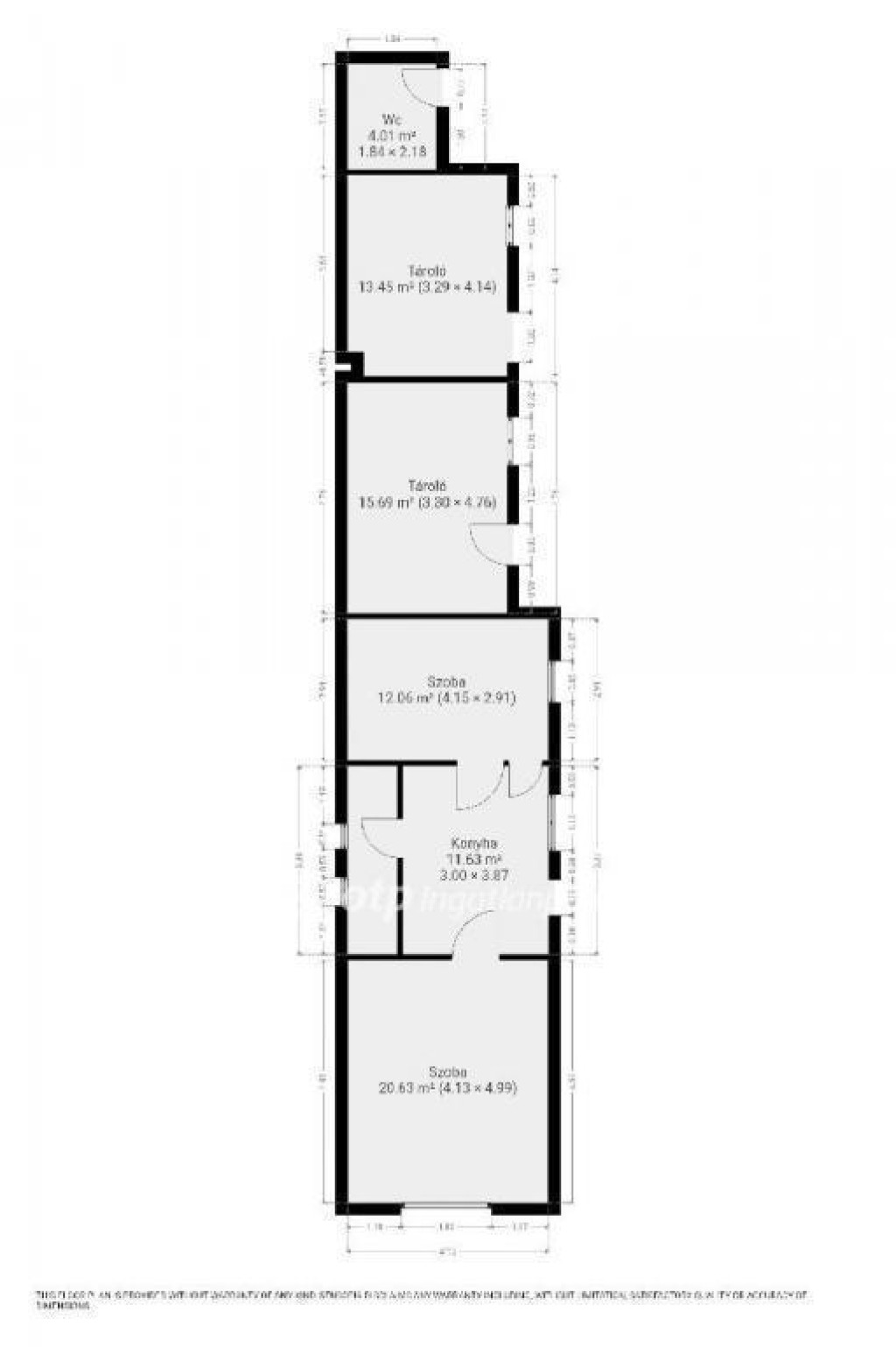 A telek mérete 631 m2, amely elegendő teret biztosít kerti funkciók, pihenőudvar vagy további tárolás kialakítására.