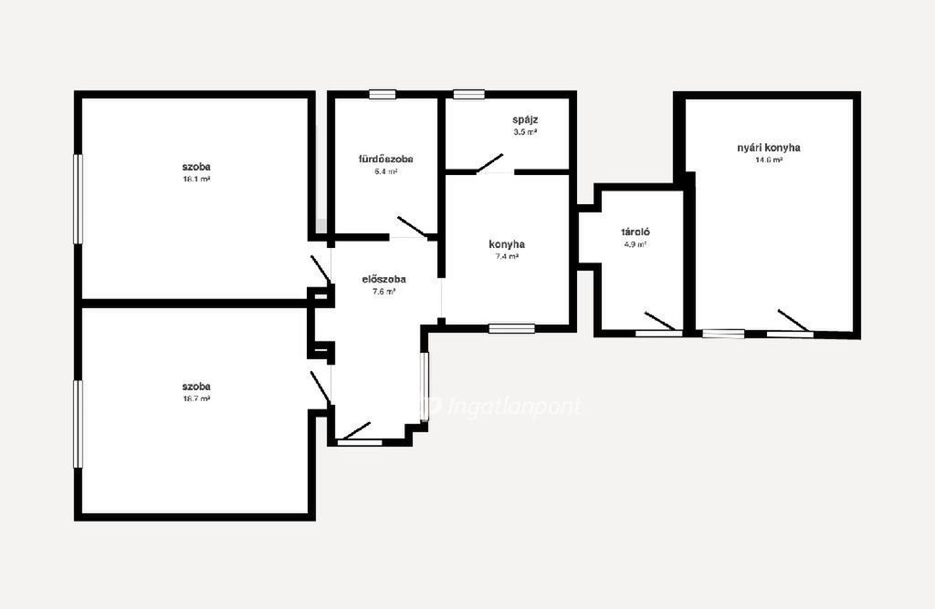 A lakóterület 75 nm, melyben 2 szoba, konyha és fürdő+wc -egyben lett kialakítva.