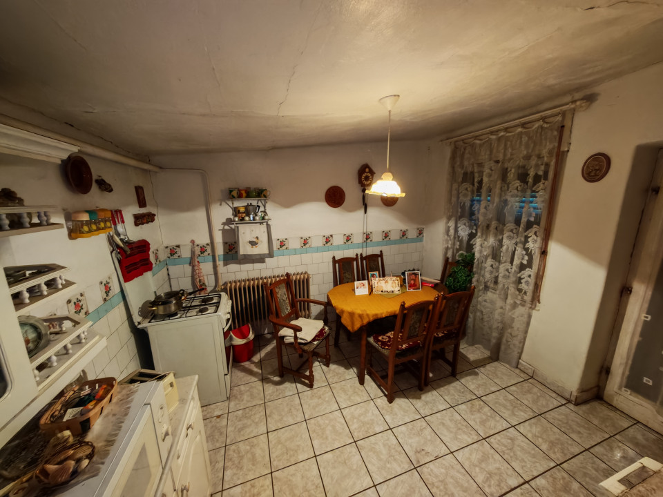A ház falazata tégla, 4 szobás, ahogy a képeken is látszik átlagos állapotú. Víz és villany közművel ellátott, gáz a telken belül található. A ház melegéről vegyes tüzelésű kazán gondoskodik központilag. Csatornahálózatra rá van kötve az ingatlan. A tető átlagos, hullámpala fedésű. Az udvaron található egy pince, ól ,tároló és egy garázs. Rendezett tulajdoni viszonyok, per -és tehermentes az ingatlan.