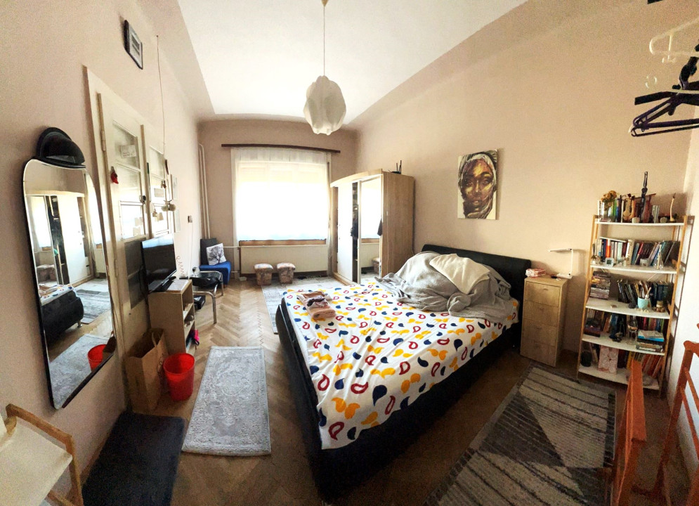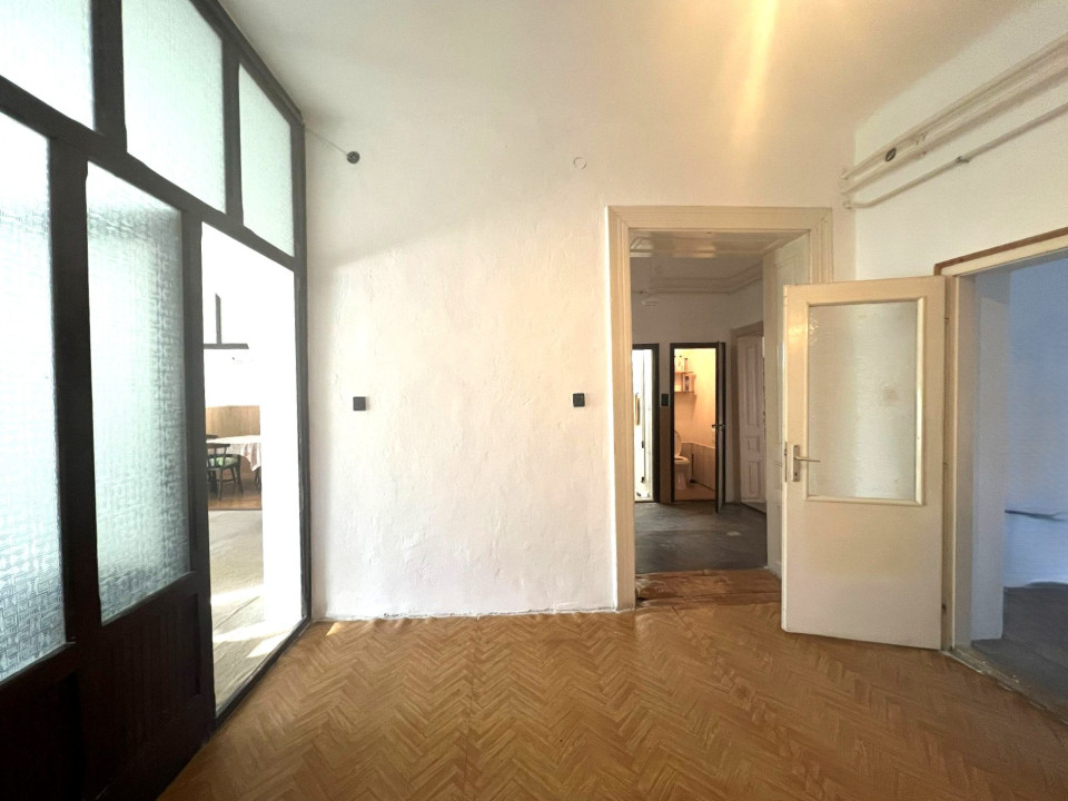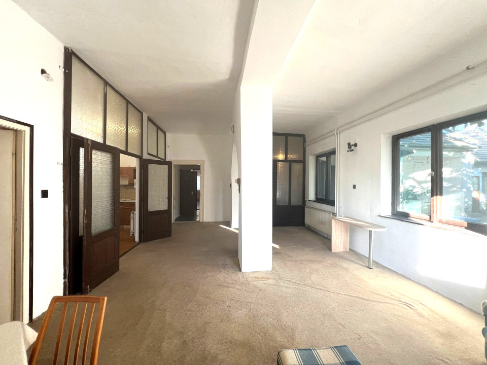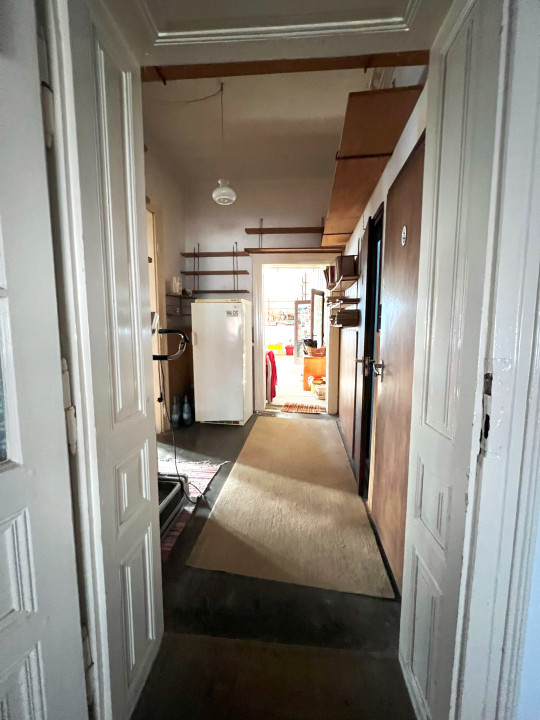 Az ingatlan jellemzői: A nagyobb, 150 m²-es lakrész tágas tereivel a múlt eleganciáját és a jövő lehetőségeit ötvözi. Belmagassága 3,2 méter, ami impozáns tágasságot ad a helyiségeknek. Itt található egy előszoba, két nagyobb és egy kisebb szoba, egy teljesen felújított fürdőszoba, különálló WC, közlekedő, spájz, valamint egy nagy nappali, amely egy harmonikaajtóval kapcsolódik a konyhához. Ez lehetővé teszi, hogy a nappalit és a konyhát egybenyithassuk, ha nagyobb térre van szükség. Bár felújításra szorul, jelenlegi állapotában is remek alapot nyújt egy modern, stílusos otthon kialakításához.