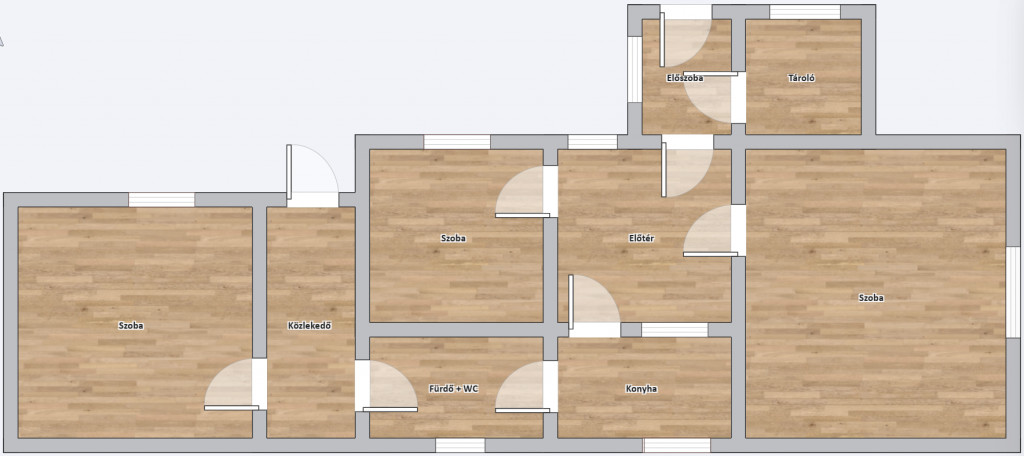 Rendelkezik 2 és 1 fél szobával, előtérrel, konyhával és fürdőszoba +wc helyiségekkel.