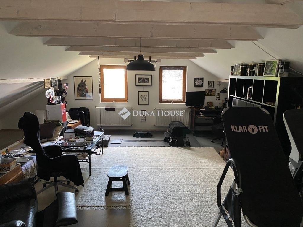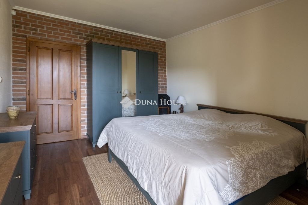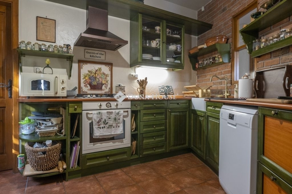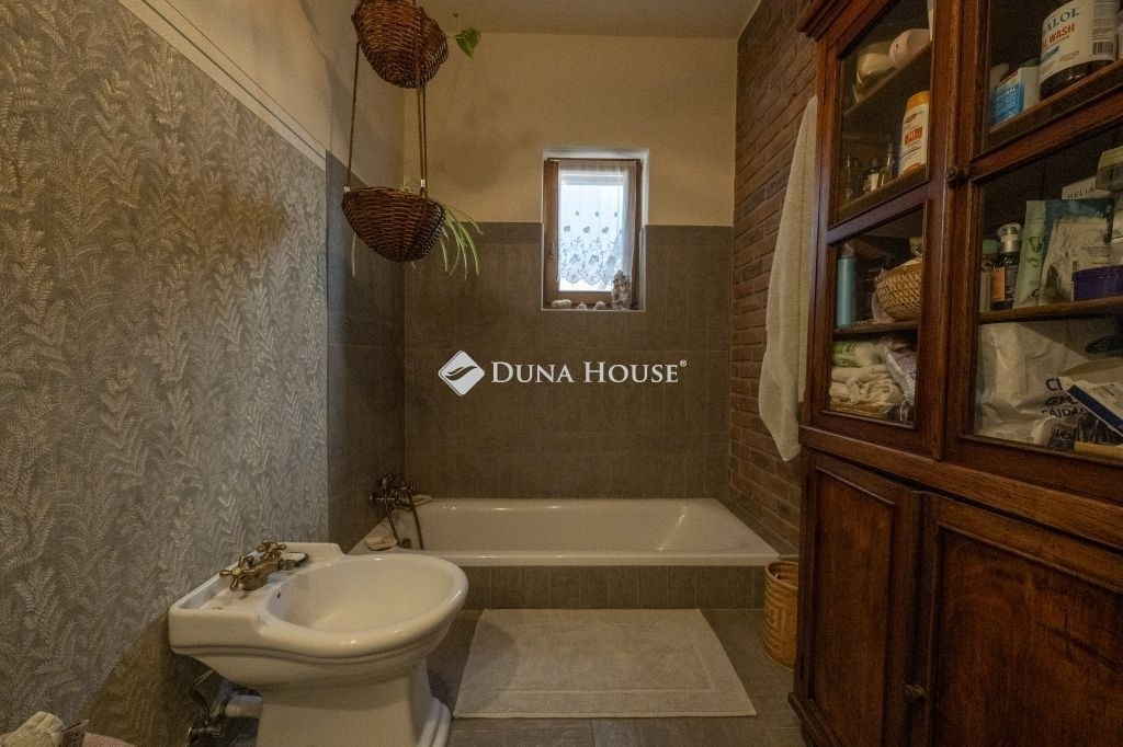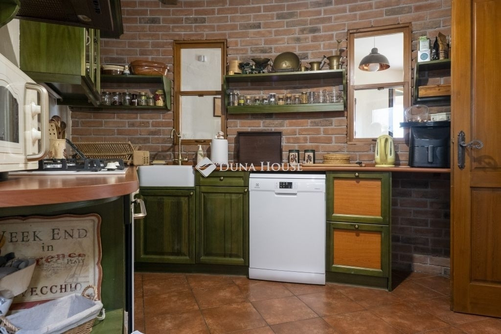 Szeretne country hangulatú otthont Budajenőn?Csendes utcában szinte új családi ház eladó!Budajenő csendes, zöld mellékutcájában eladóvá vált egy 2002-ben épült, 216 nm-es családi ház.Lovas család tulajdona, akik a természetre hangolódva élnek, az otthonukat is ennek szellemében alakították ki.Kiváló minőségű alapanyagok, egyedi megoldások, százéves fagerenda design-elem, asztalosmesterek beépített szekrényei, természetes ívek, napsütötte terek.Az épület 38-as, nútféderes porotherm téglából készült, vasbeton födémmel, azon 20 cm-es hang- és hőszigeteléssel. A külső falakon 6 cm-es hőszigetelés. A tetőn csornai cserép, alatta KNAUF Ecose-paplan kettős szigetelés. Hőszigetelt egyedi, fábül készült nyílászárók, szúnyoghálókkal.A fűtés nagyon gazdaságos: gázkazánnal, padlófűtéssel, radiátorokkal történik, a tetőtérben 1 db hűtő-fűtő klíma üzemel.Az elektromos hálózat szabványosan készült - 3x16A - a háztetőre könnyen telepíthető napelem.Kamera- és riasztórendszer, optikai kábel, vízlágyító is segítik a háziak komfortos életét.Egy éven belül készült el a teljes belső festés, a külső faburkolatok festése, a kerítés felújítása.Minden szinte teljesen új, csak költözni kell.A ház a kiváló szigetelésnek köszönhetően nagyon energiahatékonyan üzemeltethető:2024. rezsi átalány:víz 6.400 Ft/hógáz 8.000 Ft/hóáram 7.980 Ft/hóaz építményadó 74.880 / év.A 712 nm-es, teljesen körülkerített telken kétállásos, fedett kocsibeálló és egy 18 nm-es, borostyánnal befuttatott kennel.Az enyhén lejtős kert parkosított, benne termését ontó fügefa, gyógynövénykert, 2 bőven termő veteményes és kerti vízcsap külön mérővel.Árnyas, virágos utca, barátságos szomszédok. A tulajdonosok nagyon szeretnek itt élni, csak a lovaik miatt költöznek el.Budajenő a Budai Tájvédelmi körzet mellett erdők ölelte kis község, Budapesttől 22 km-re. Van CBA, egyéb üzletek, nagyon jó óvoda és iskola, valamint összetartó faluközösség.Ha ilyen természetes hangulatú, egyedi otthonra vágyik, várom hívását.