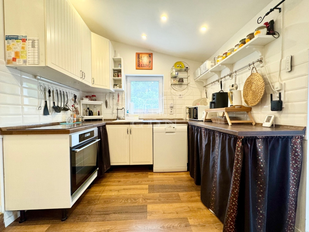 Karnyújtásnyira Bp III. kerületétől, Budakalász üdülőövezetében, (Üh-H) csendes aszfaltozott mellékutcában, közvetlen Dunaparti, 720 nm-es telken 1980-as években, tégla falazattall épült, körbejárható, kétszintes, 72 nm-es hasznos lakóterületű,(alapterület 42 nm) 2 szobás, étkező konyhás, dupla teraszos, (20+50nm) elektromos cirkó fűtésű, napos-világos fekvésű (É-K-D-NY), alacsony fenntartású, 2020-ban, teljes körűen, magas műszaki szinvonalon felújított, szigetelt, klimatizált családi/ház/nyaraló, beépített, gépesített konyhával, 17 nm-es igényesen kialakított, fűthető és zárható téli kerttel, elektromos redőnyökkel, 50 nm-es kerti tárolóval, fúrt kúttal, gondozott kerttel eladó.