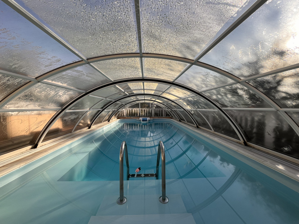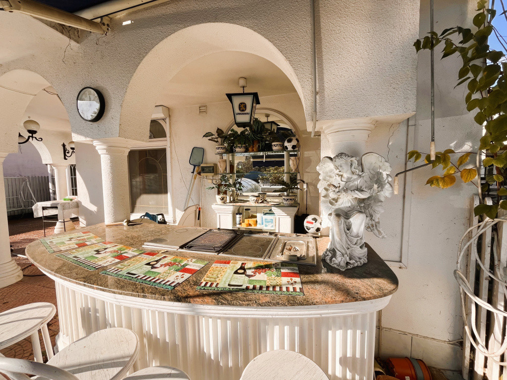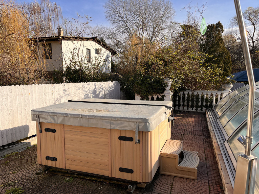 A ház mellett négyállásos garázs, valamint kiépített kerti bár, a medence és jacuzzi pedig teljes értékű wellness-élményt nyújt.