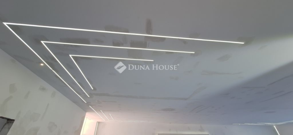 A mennyezeten dekorvilágítás gondoskodik a hangulatos fényekről, így a nappali este is különleges atmoszférát áraszt.